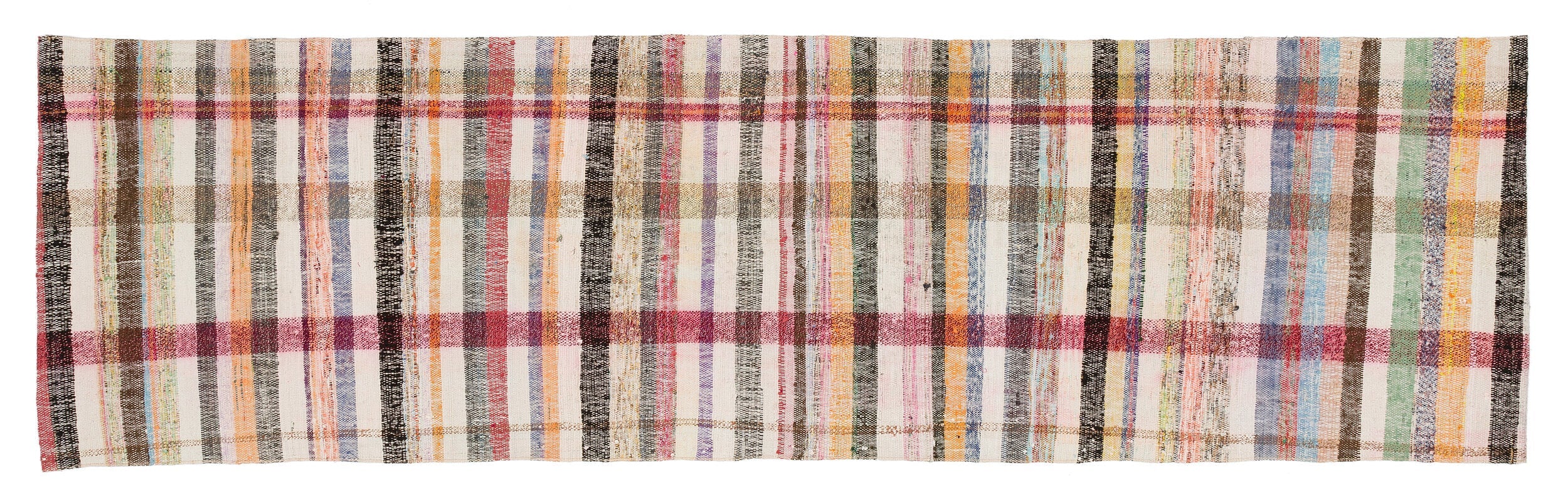 Girit Beige Striped Wool Handmade Area Rug 2'6" x 8'9"