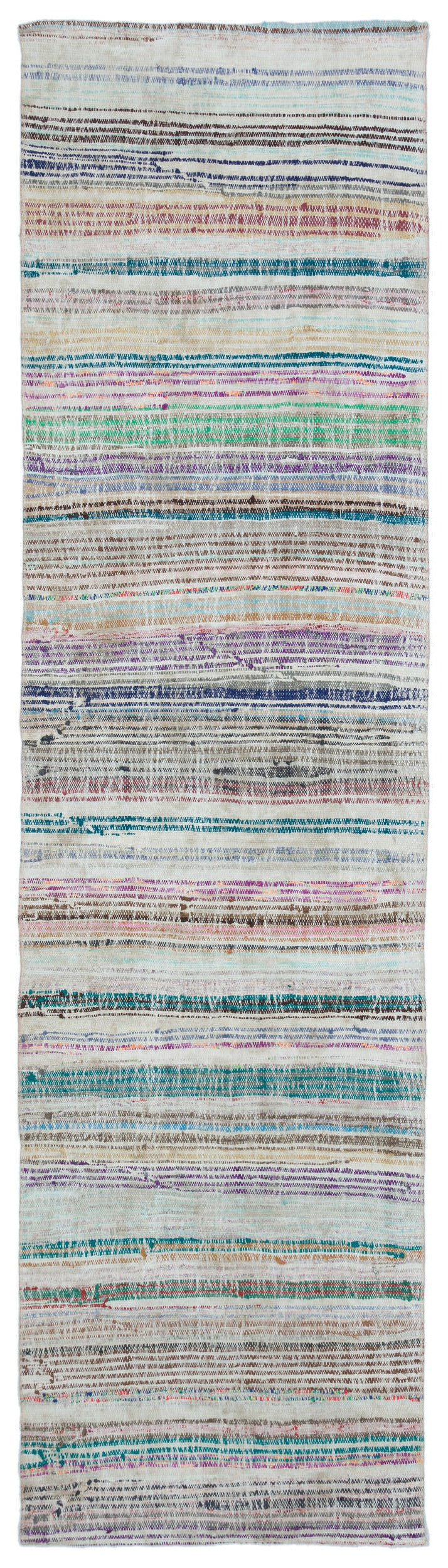 Girit Beige Striped Wool Handmade Area Rug 2'6" x 9'6"