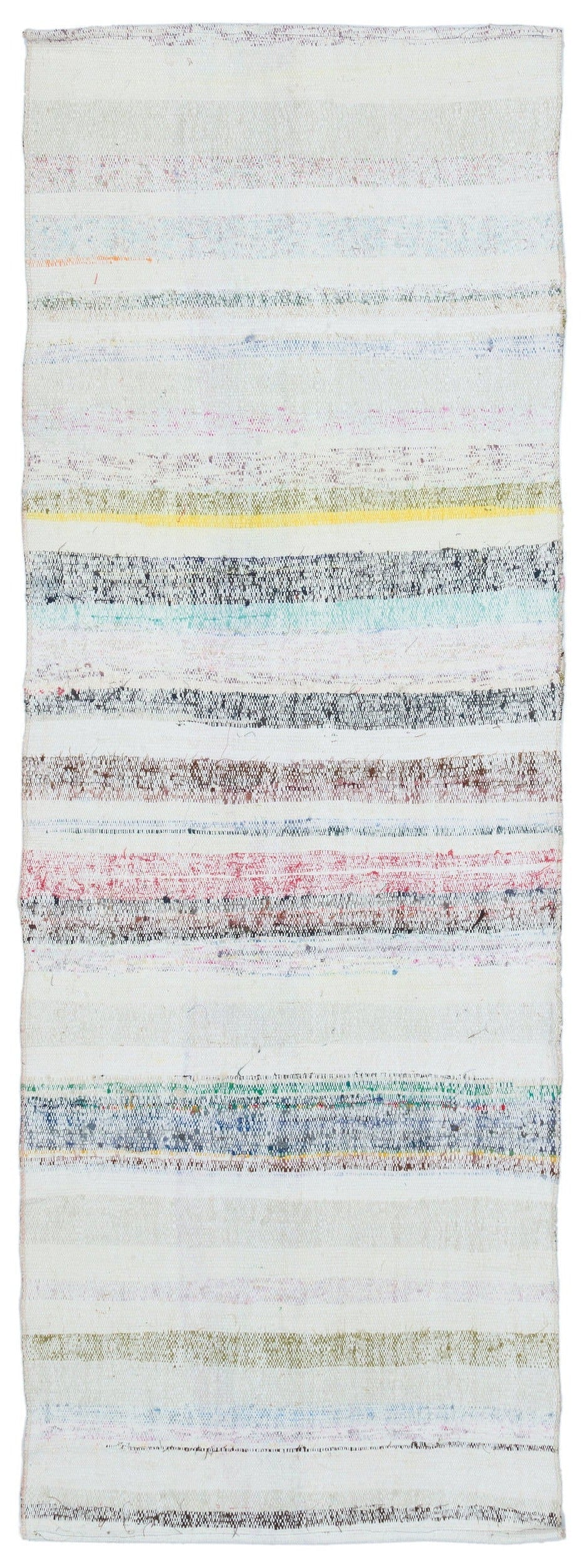 Girit Beige Striped Wool Handmade Area Rug 2'6" x 7'1"