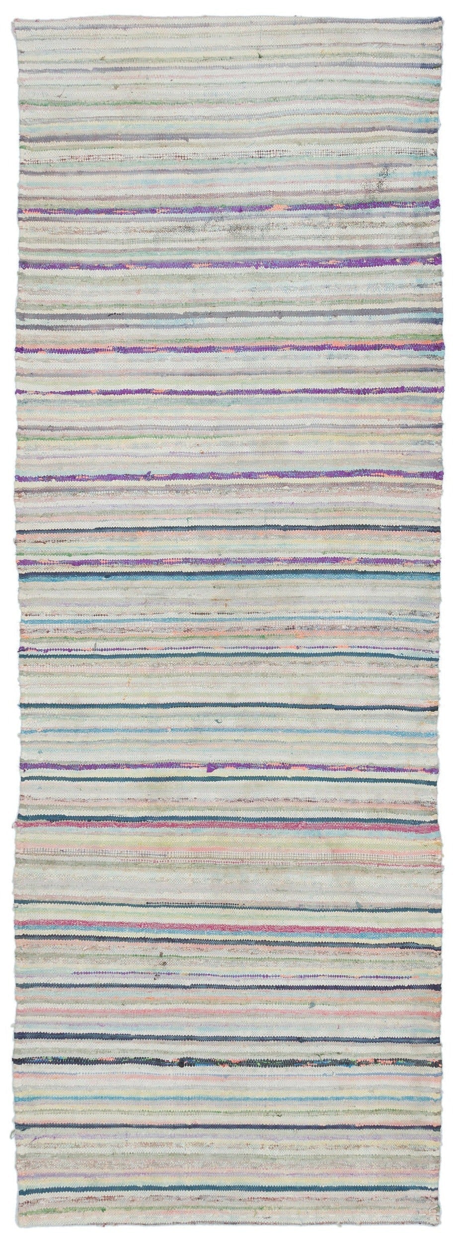 Girit Beige Striped Wool Handmade Area Rug 2'9" x 7'10"