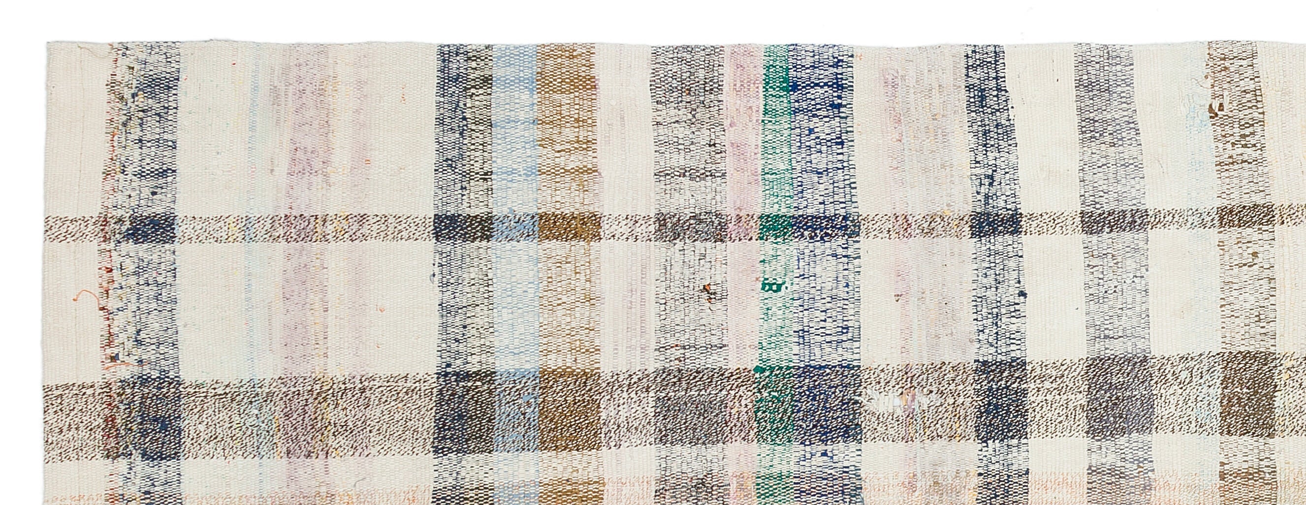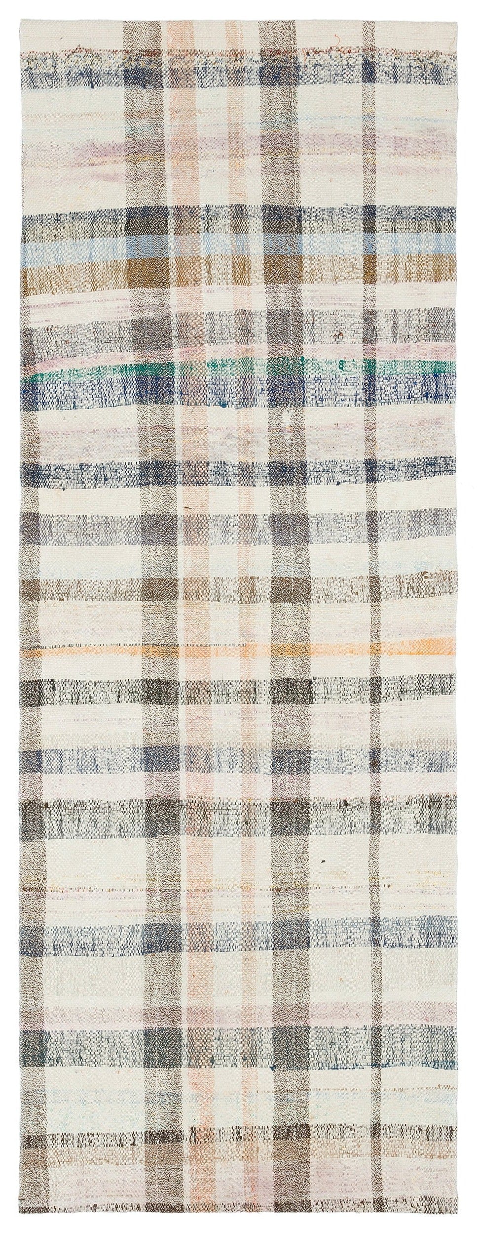 Girit Beige Striped Wool Handmade Area Rug 2'10" x 7'9"