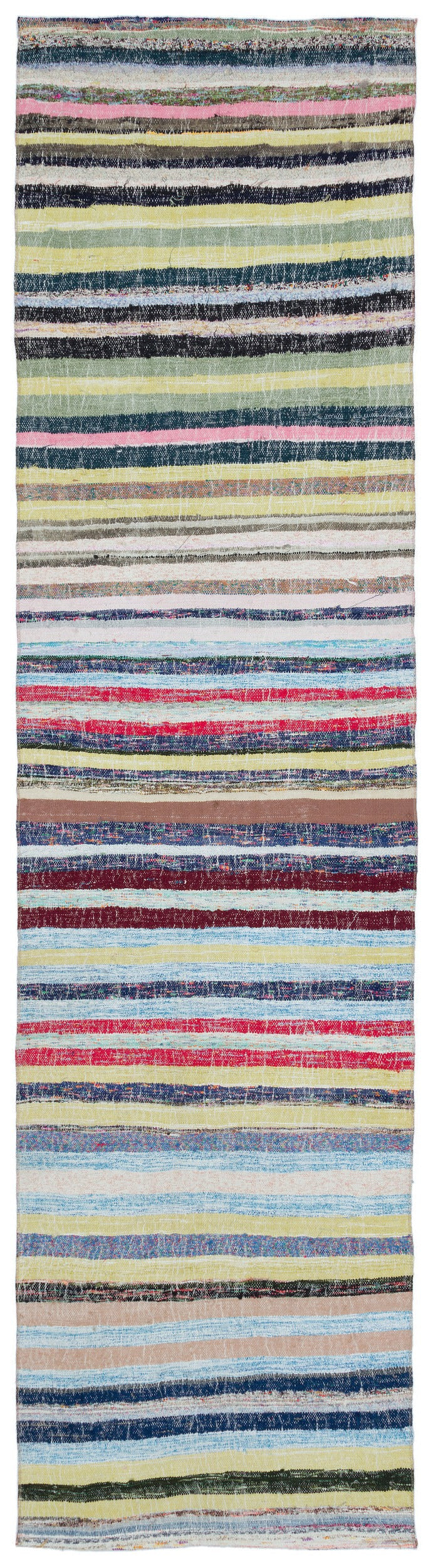 Girit Beige Striped Wool Handmade Area Rug 2'11" x 10'11"