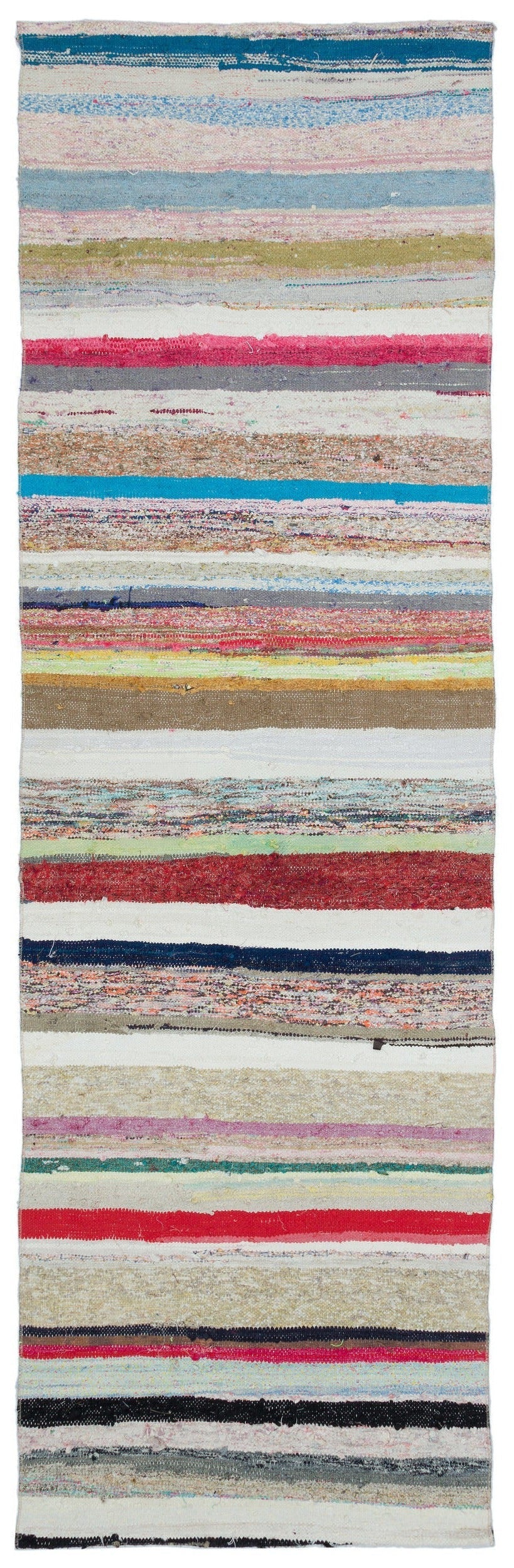 Girit Beige Striped Wool Handmade Area Rug 3'1" x 10'0"