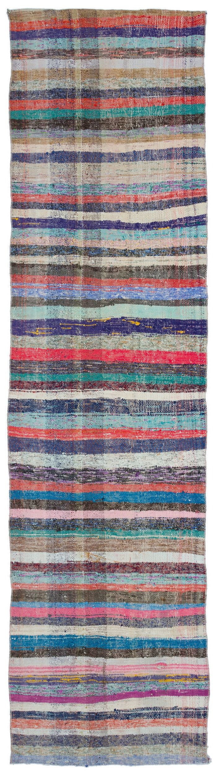 Girit Beige Striped Wool Handmade Area Rug 3'3" x 12'9"