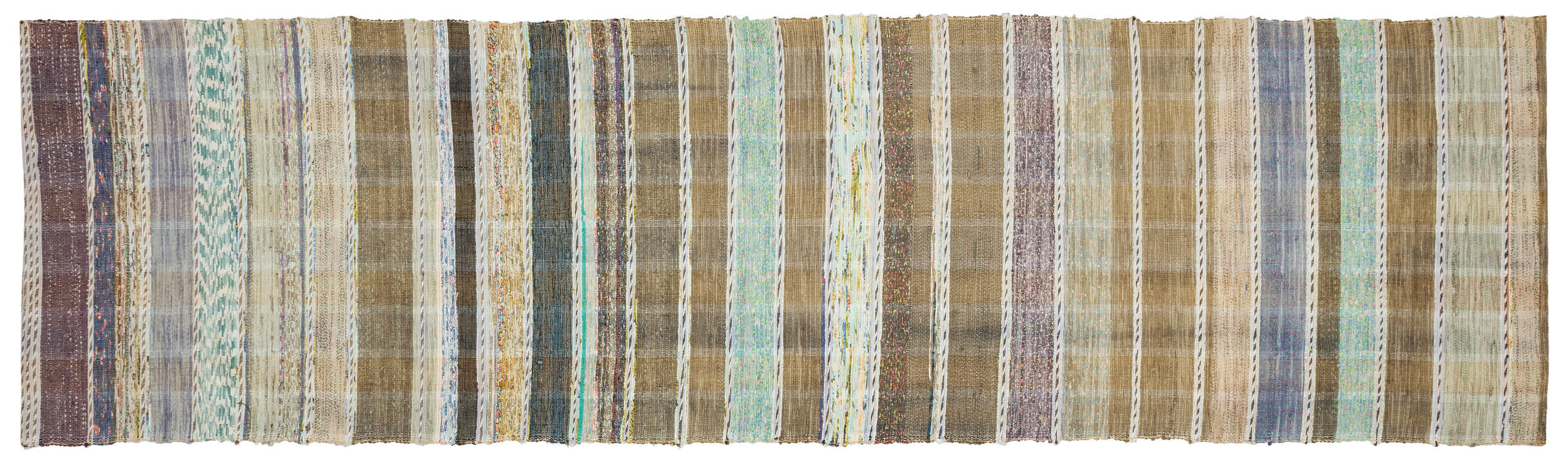 Girit Beige Striped Wool Handmade Area Rug 3'4" x 11'9"