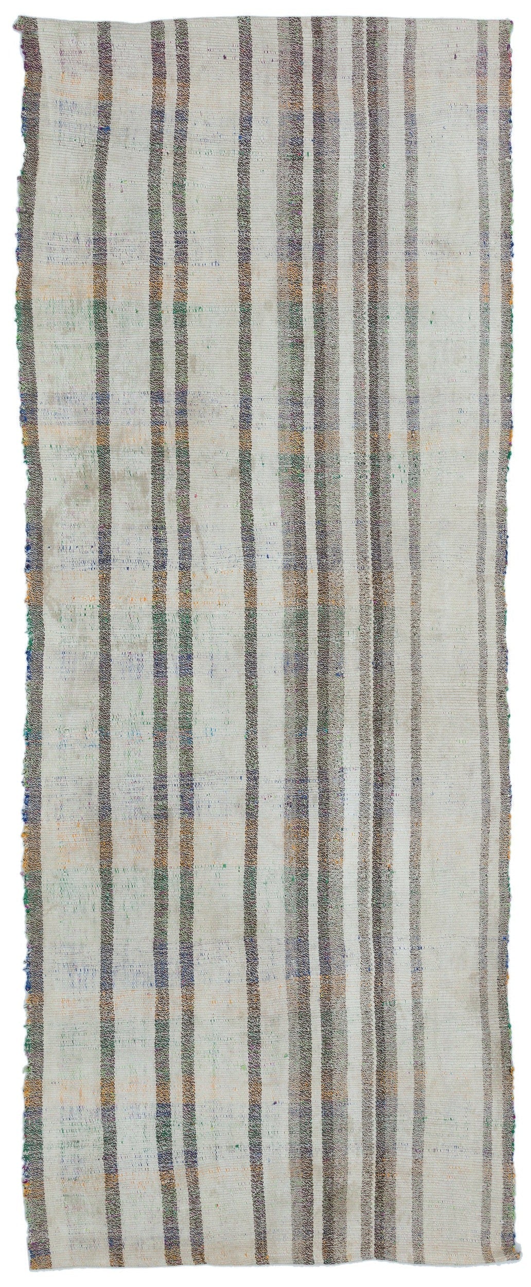 Girit Beige Striped Wool Handmade Area Rug 3'5" x 8'10"