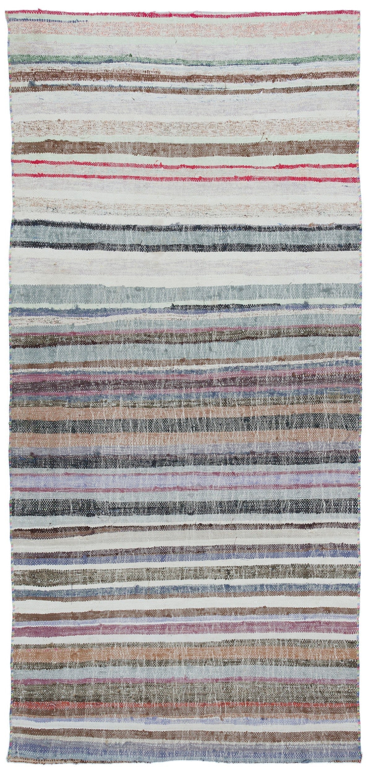 Girit Beige Striped Wool Handmade Area Rug 3'6" x 7'7"