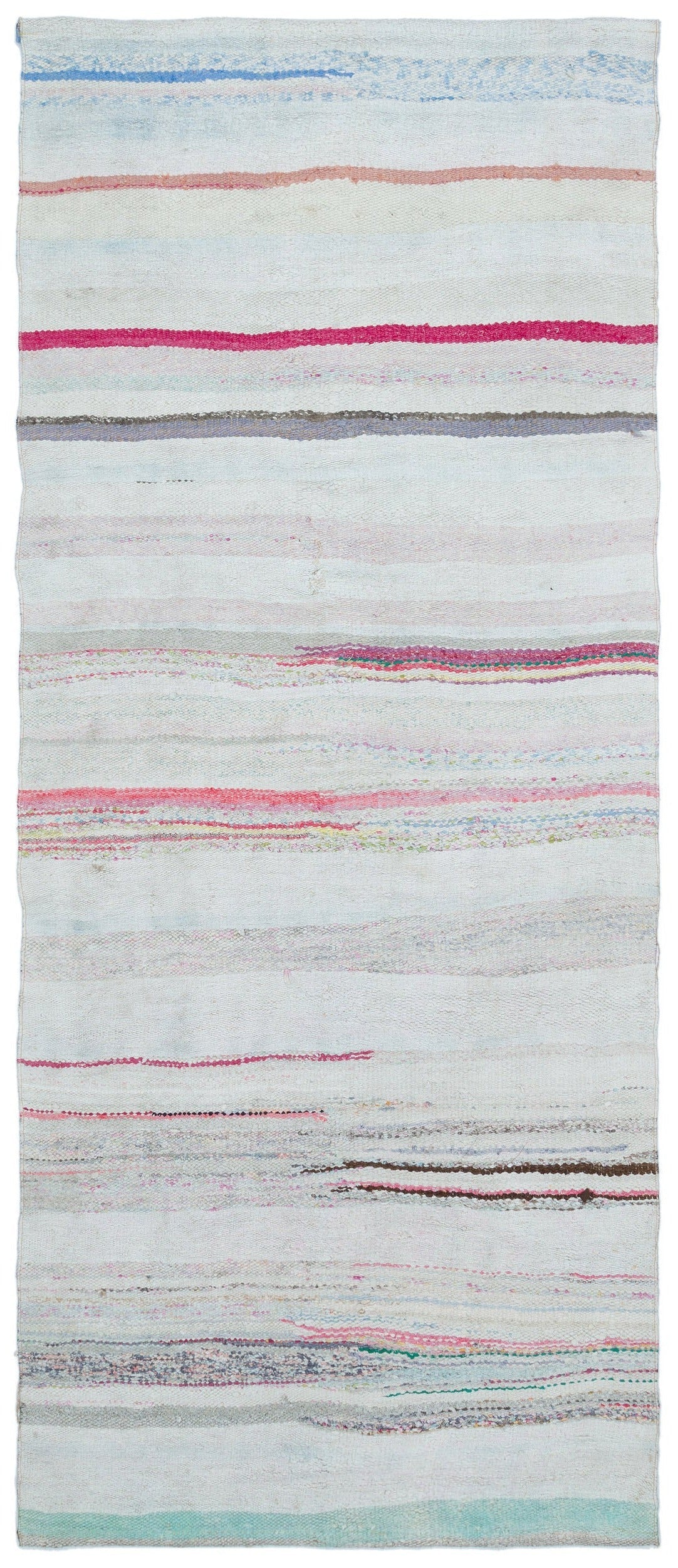 Girit Beige Striped Wool Handmade Area Rug 3'7" x 8'8"