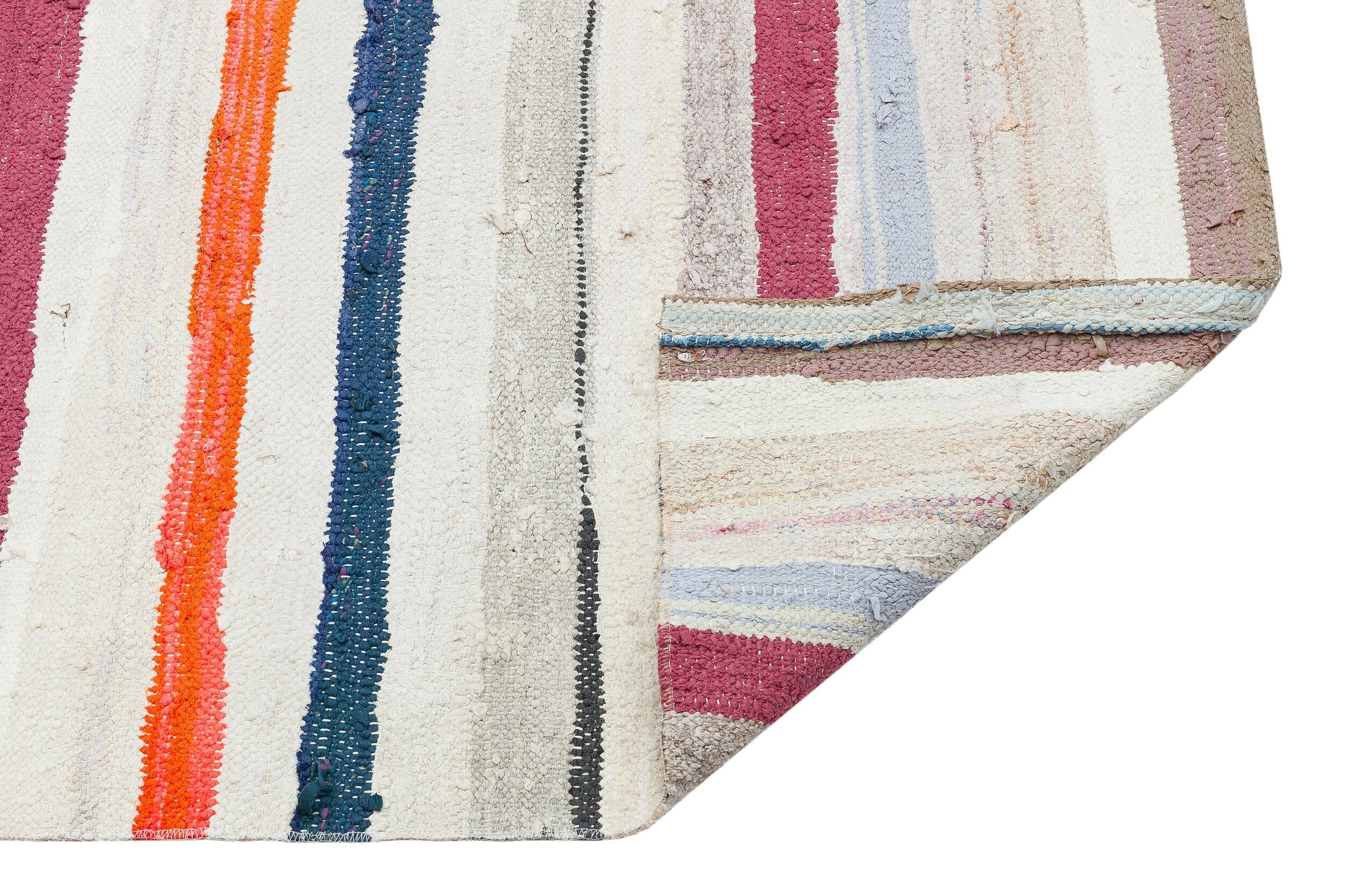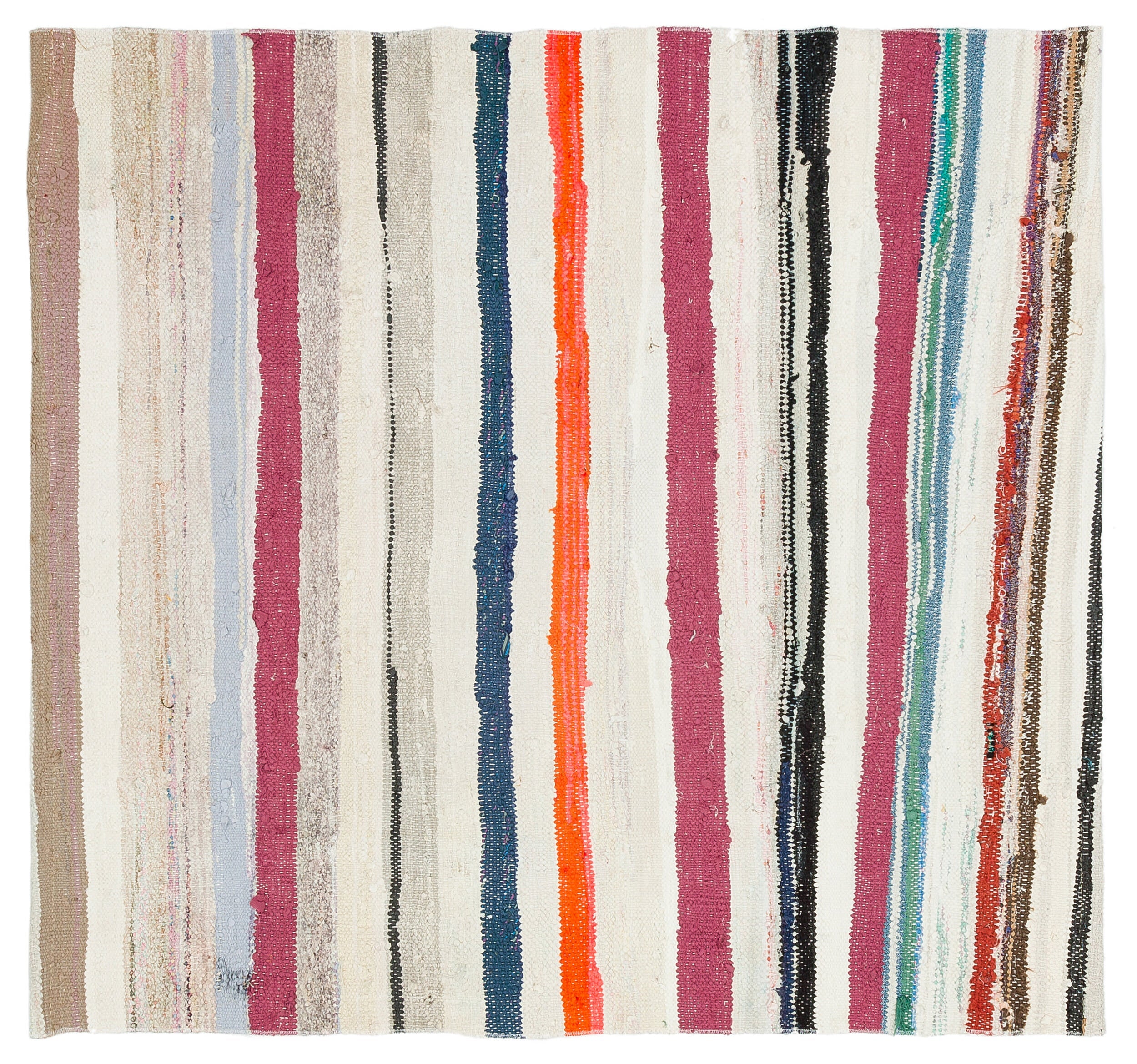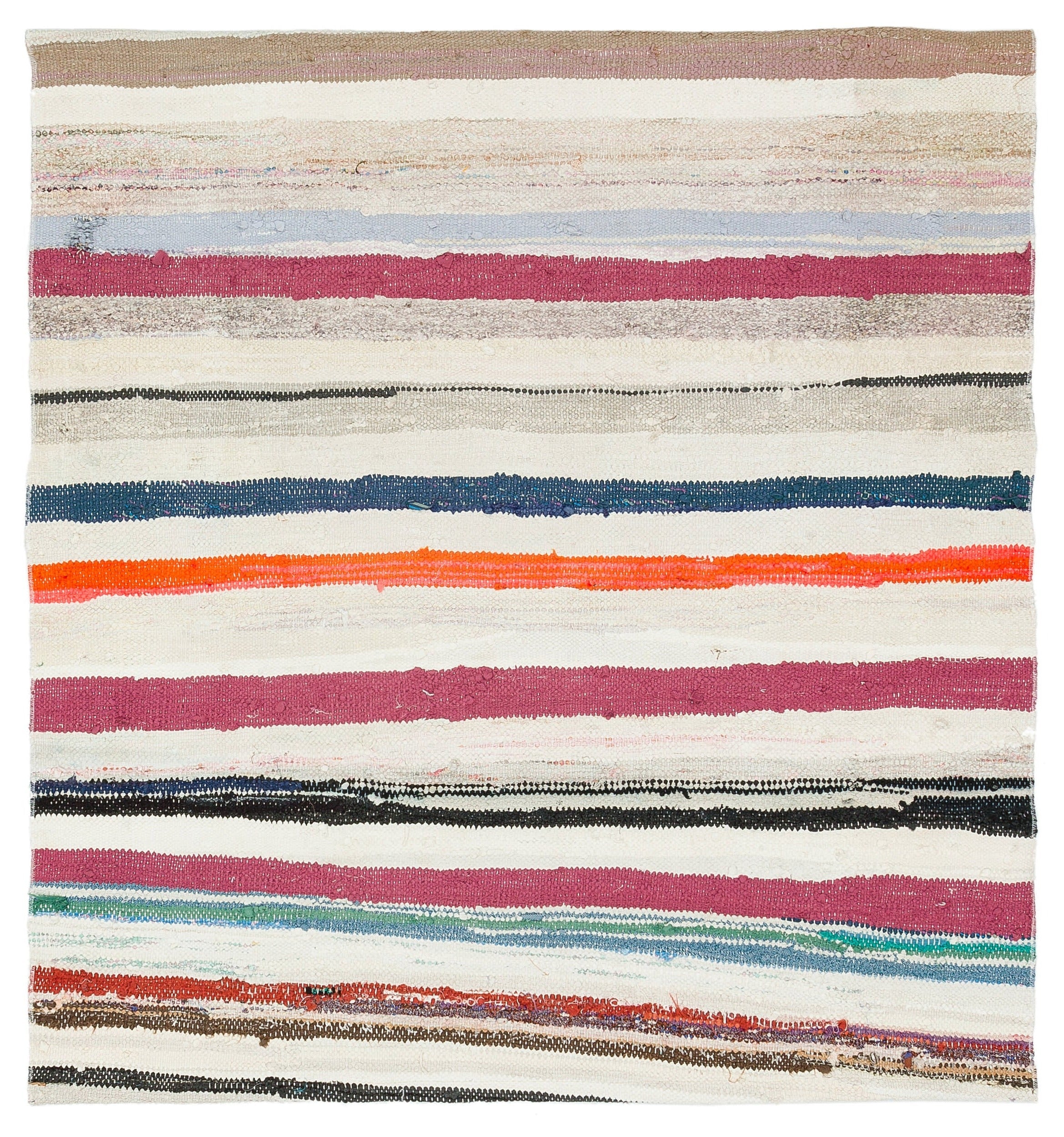 Girit Beige Striped Wool Handmade Area Rug 3'8" x 3'10"