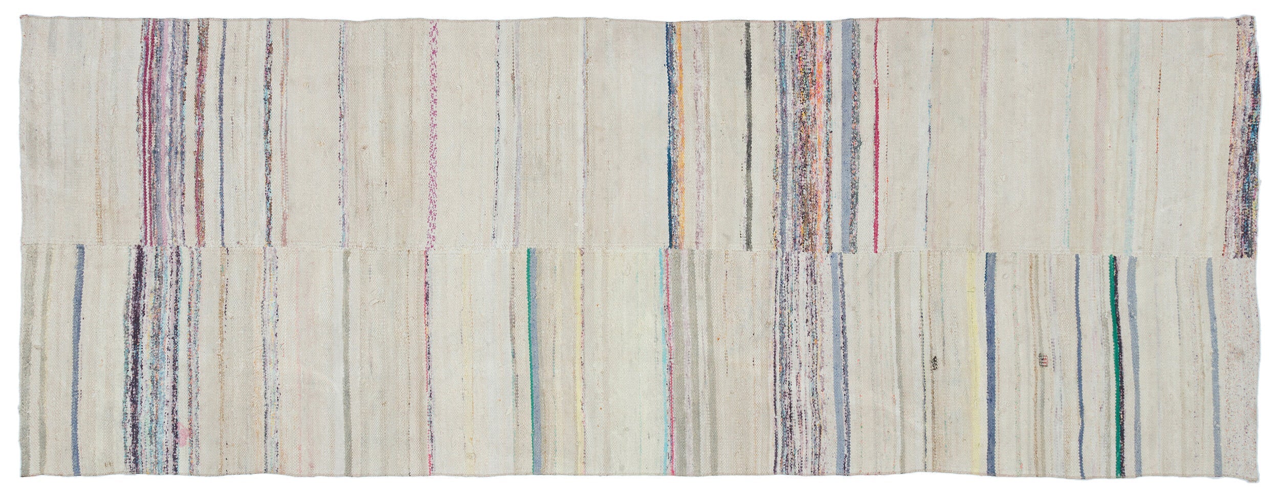 Girit Beige Striped Wool Handmade Area Rug 3'8" x 9'11"