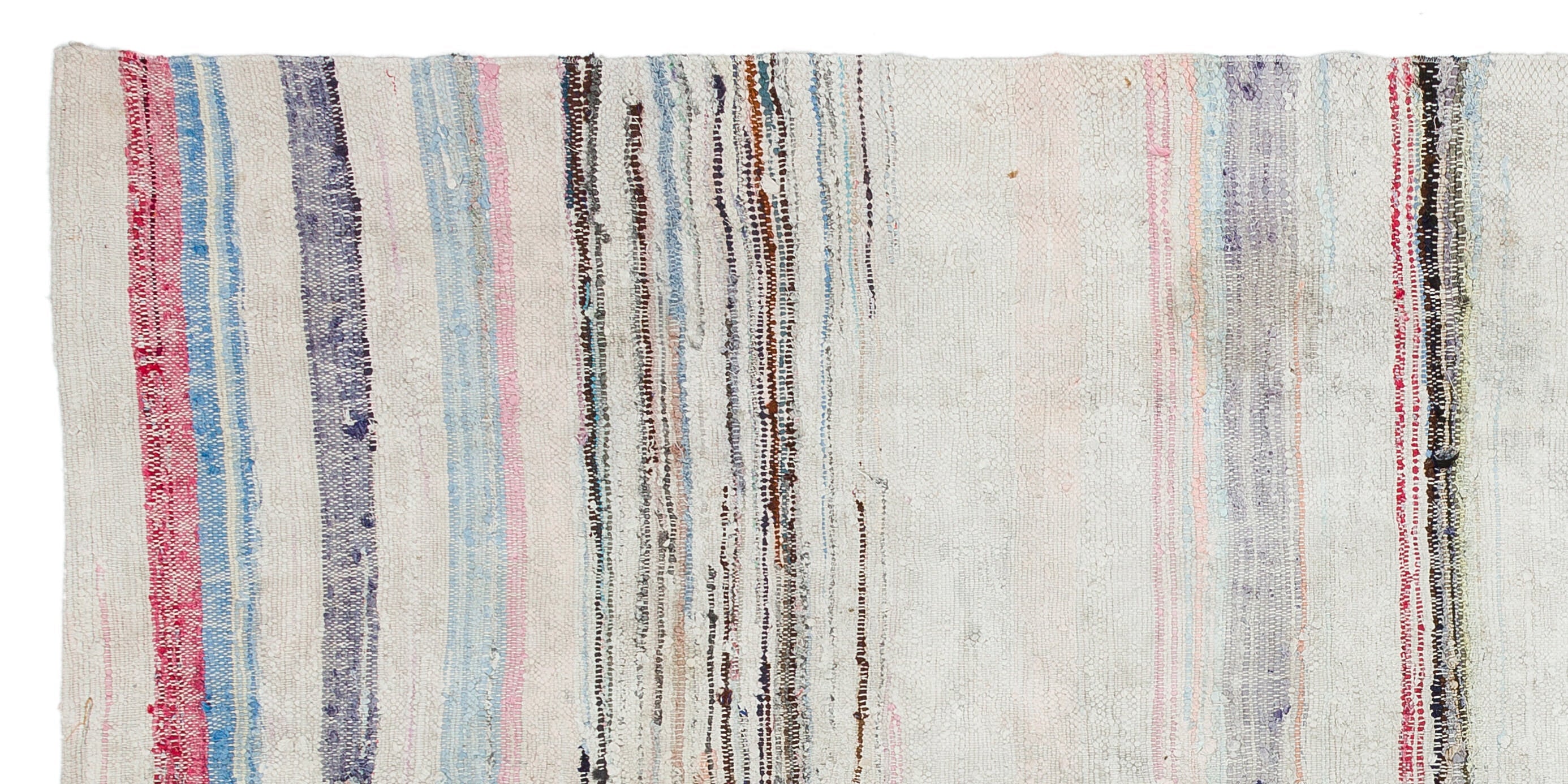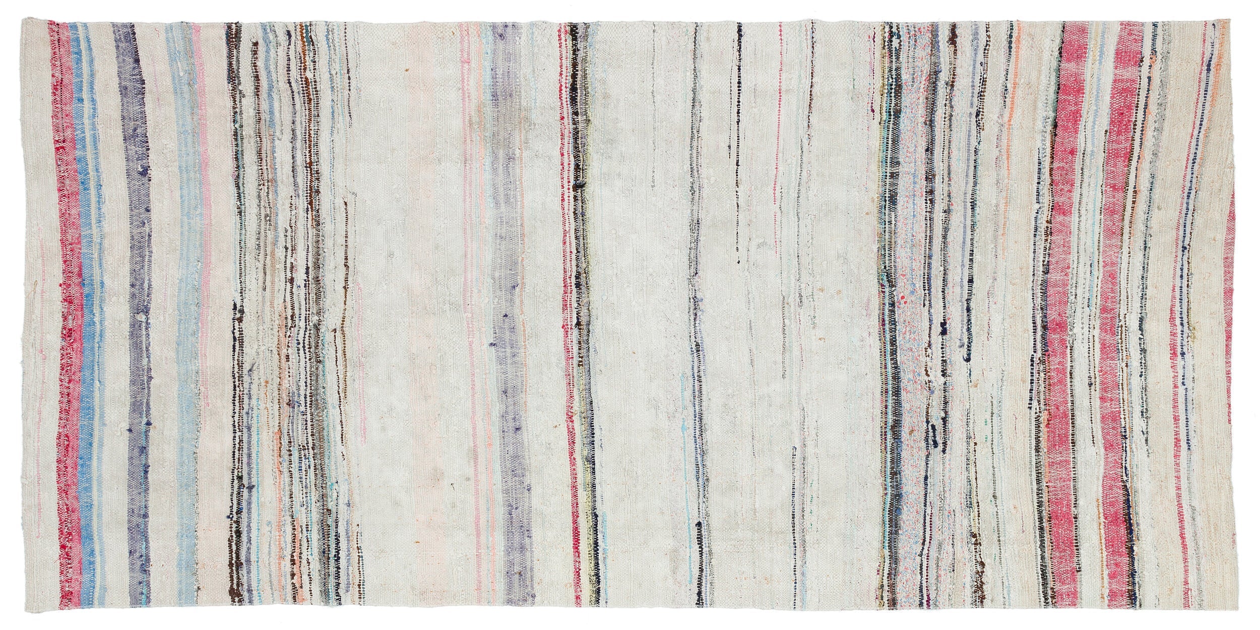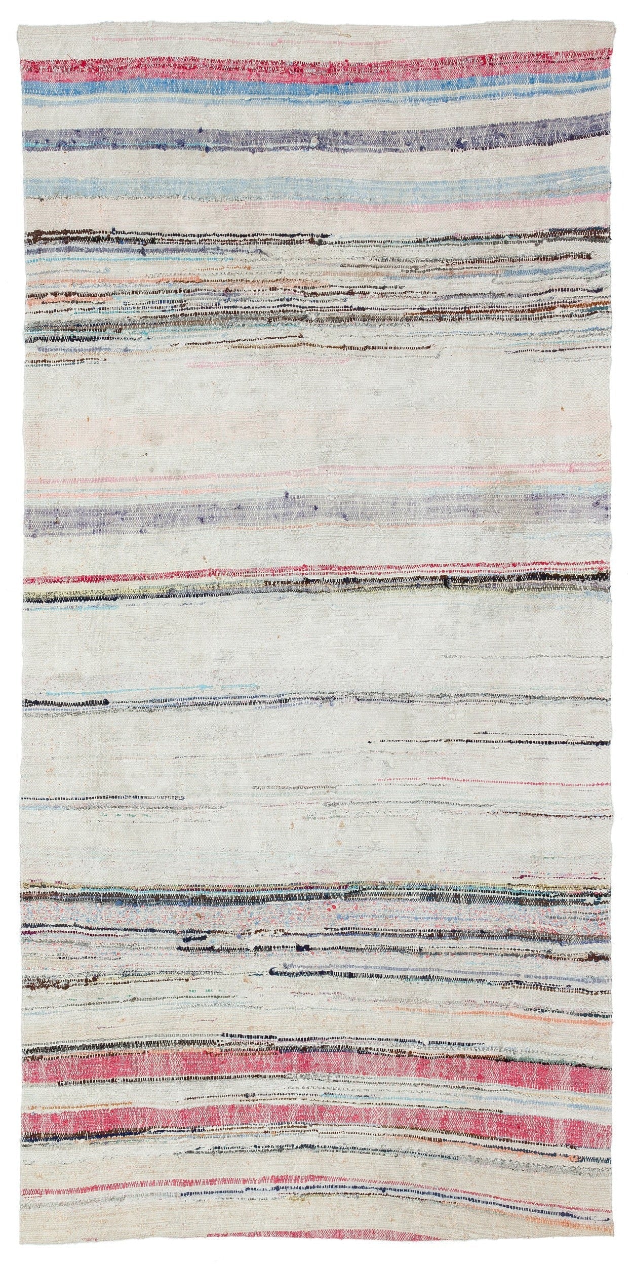 Girit Beige Striped Wool Handmade Area Rug 4'0" x 8'4"