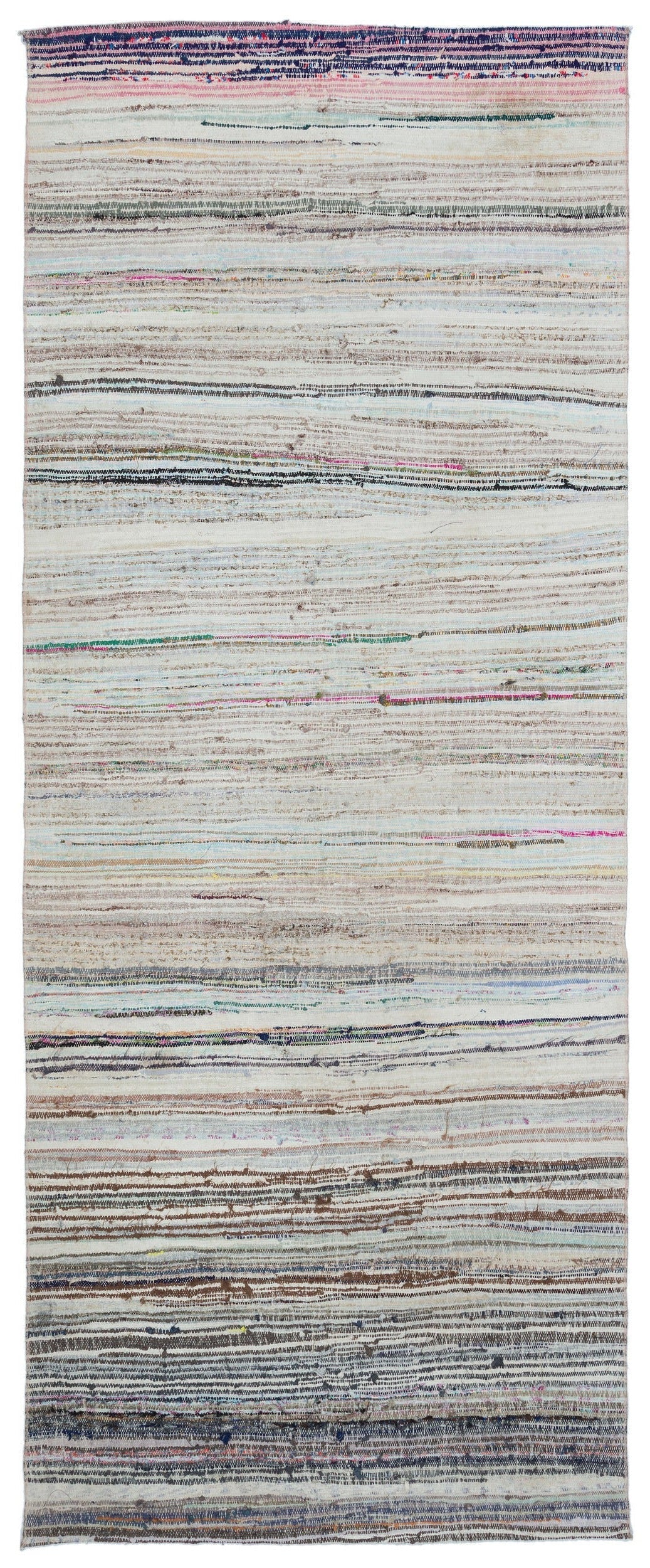 Girit Beige Striped Wool Handmade Area Rug 4'1" x 9'8"
