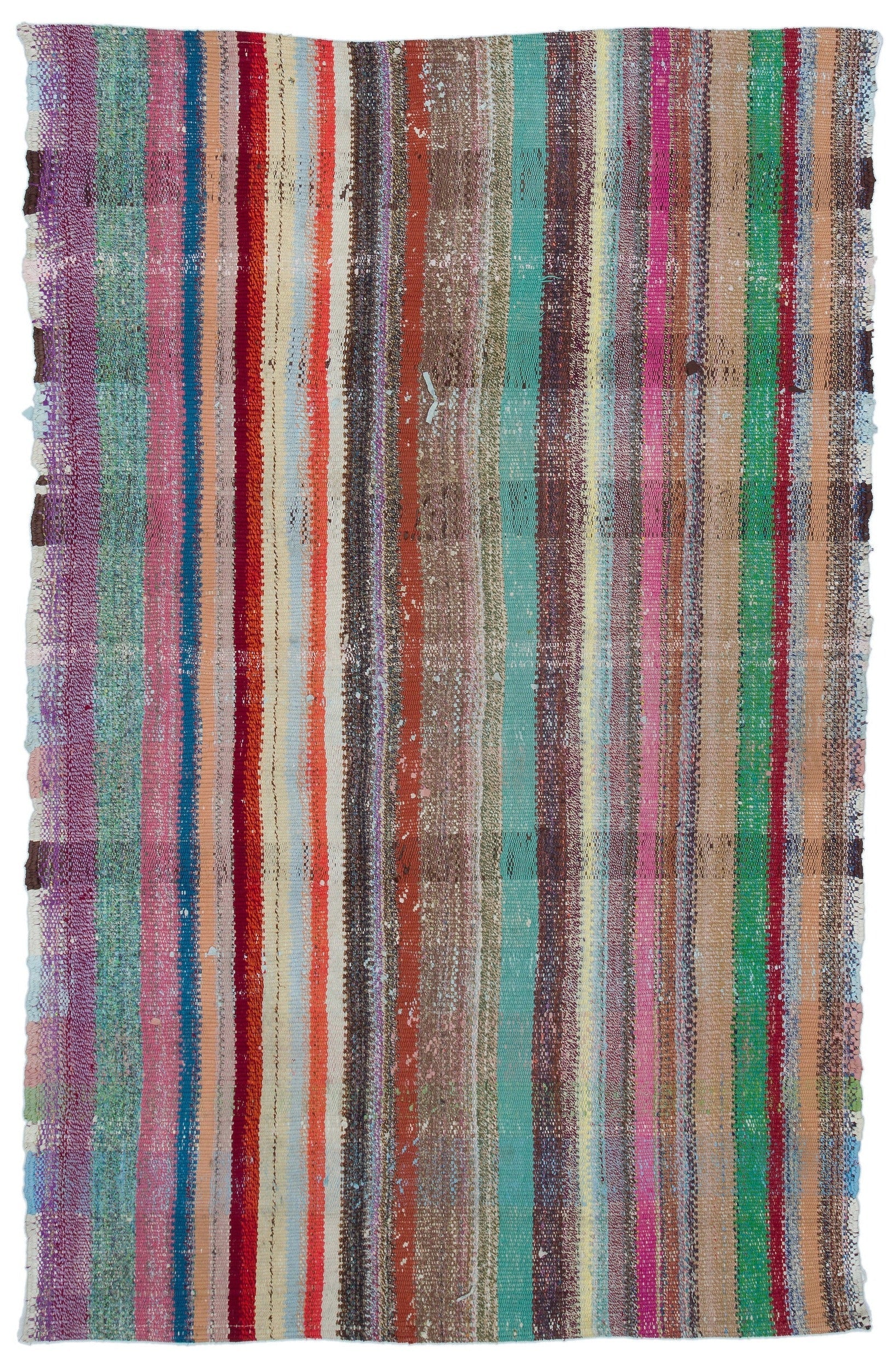 Girit Beige Striped Wool Handmade Area Rug 4'2" x 6'7"