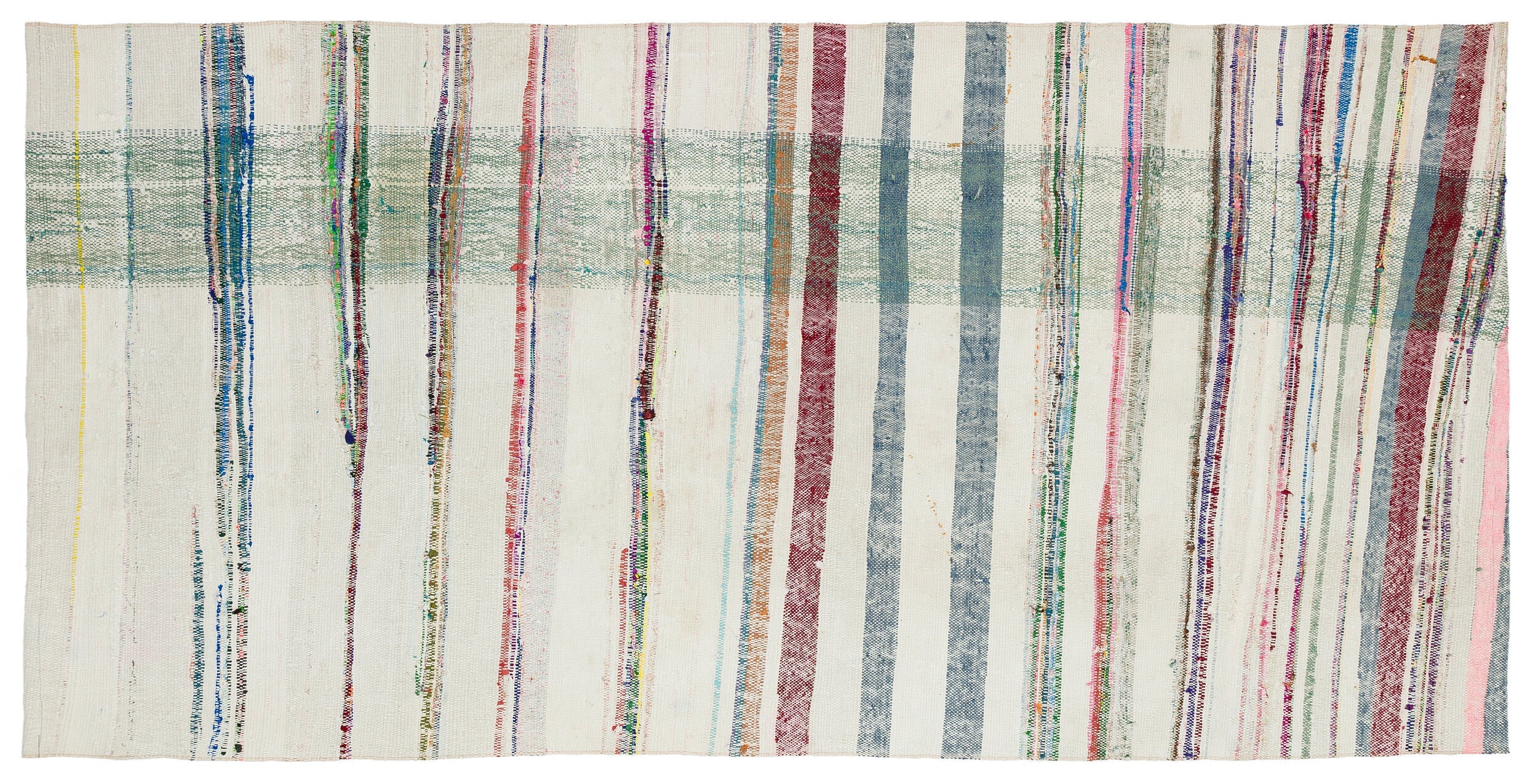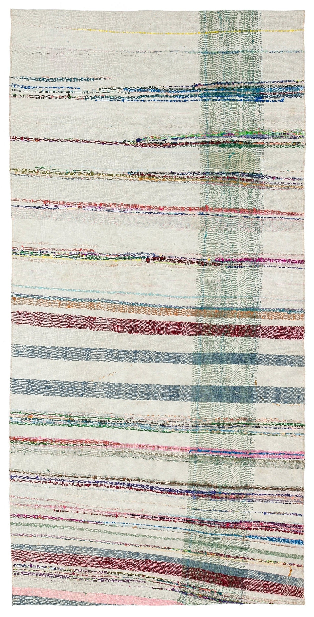 Girit Beige Striped Wool Handmade Area Rug 4'2" x 8'4"