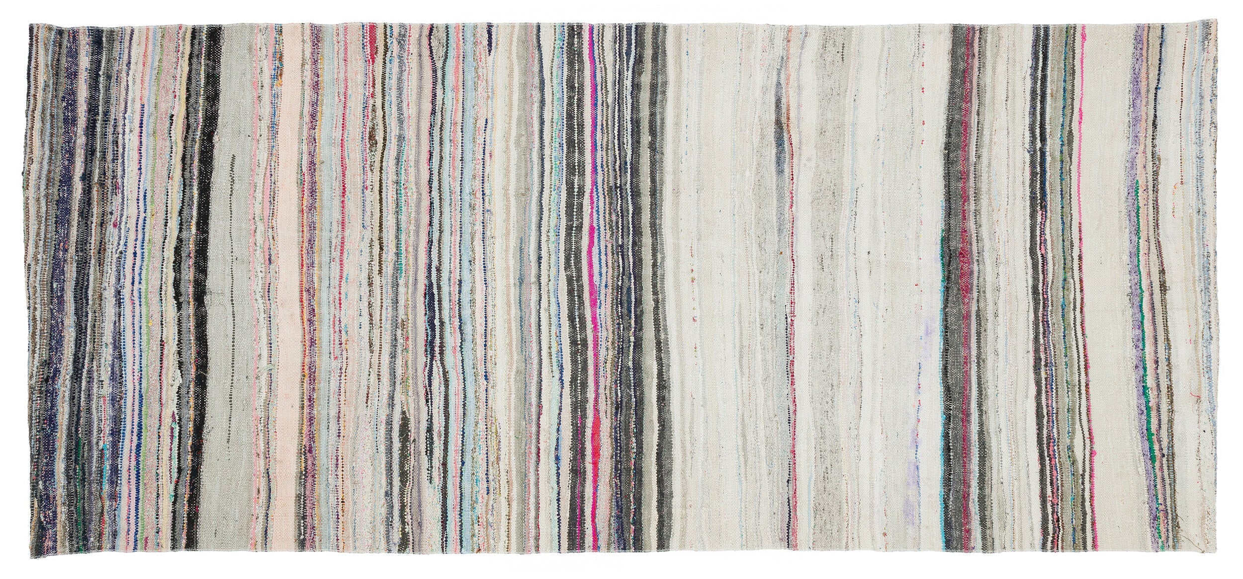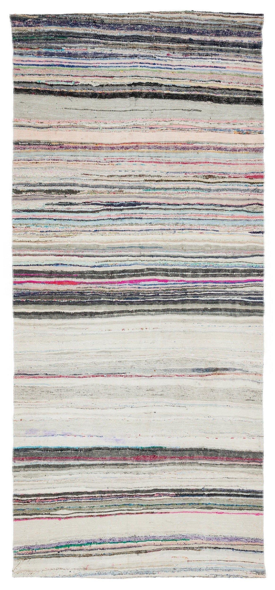 Girit Beige Striped Wool Handmade Area Rug 4'4" x 9'7"