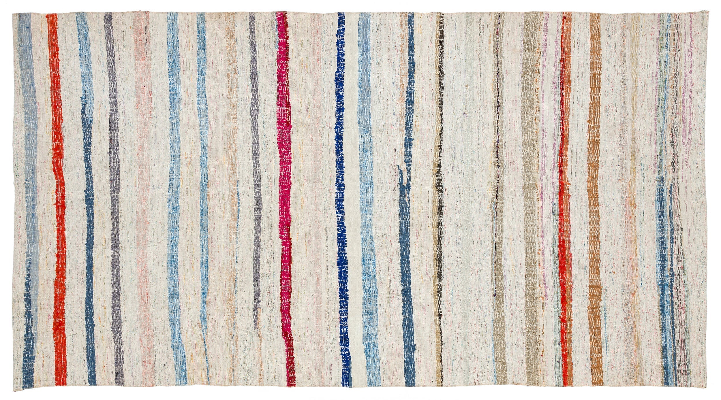 Girit Beige Striped Wool Handmade Area Rug 4'9" x 8'11"