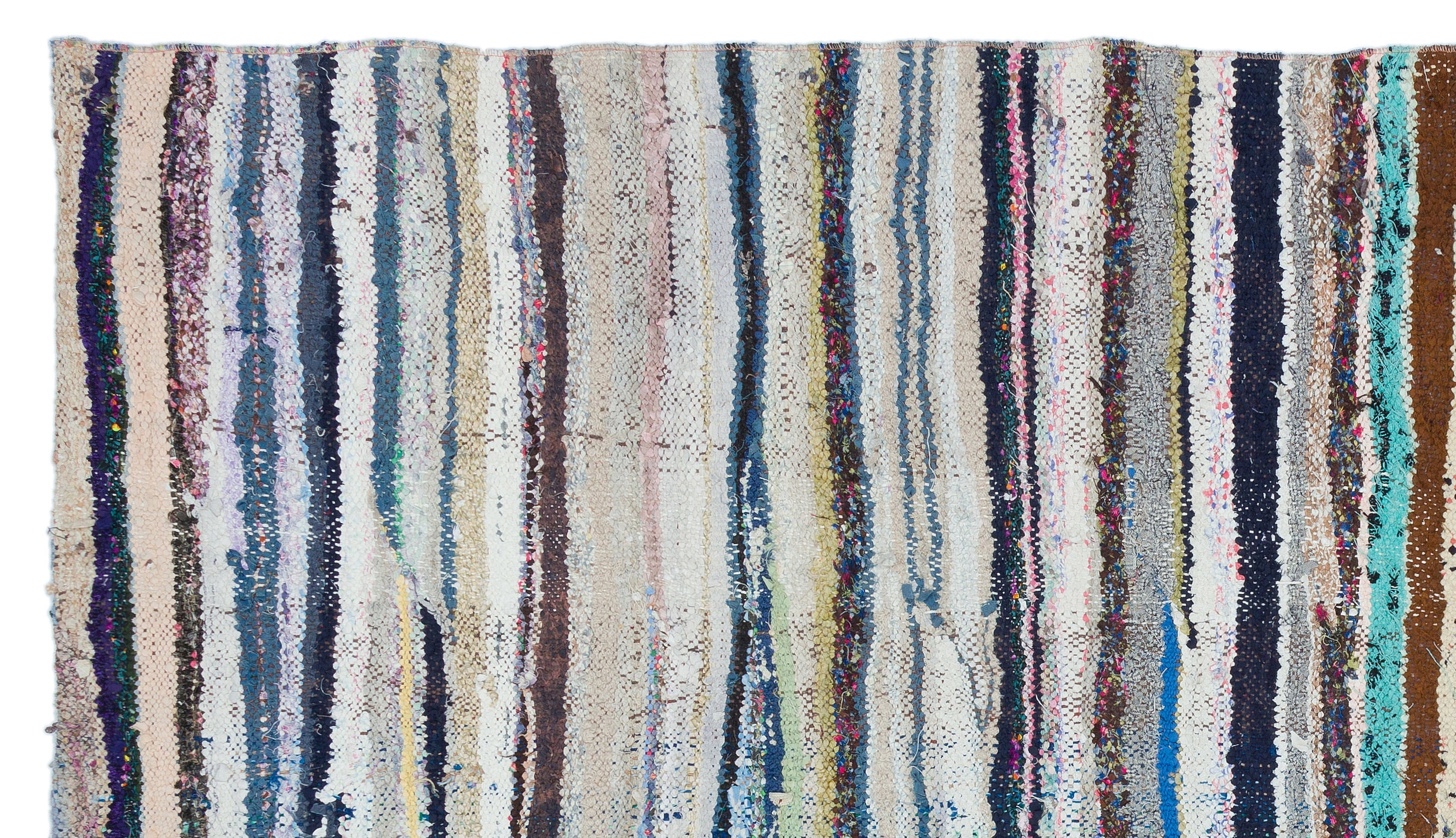 Girit Beige Striped Wool Handmade Area Rug 4'10" x 8'8"