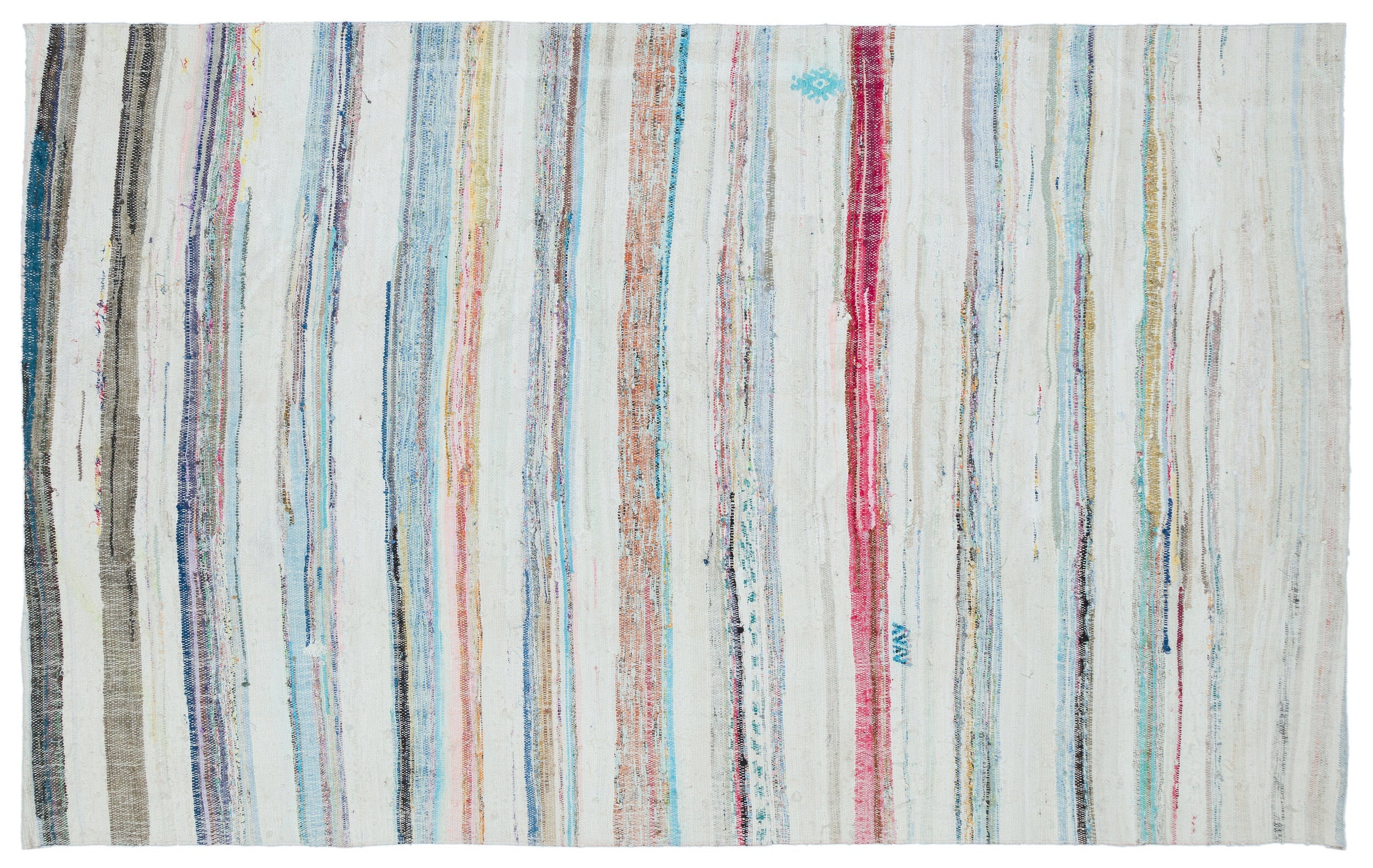 Girit Beige Striped Wool Handmade Area Rug 4'11" x 8'0"