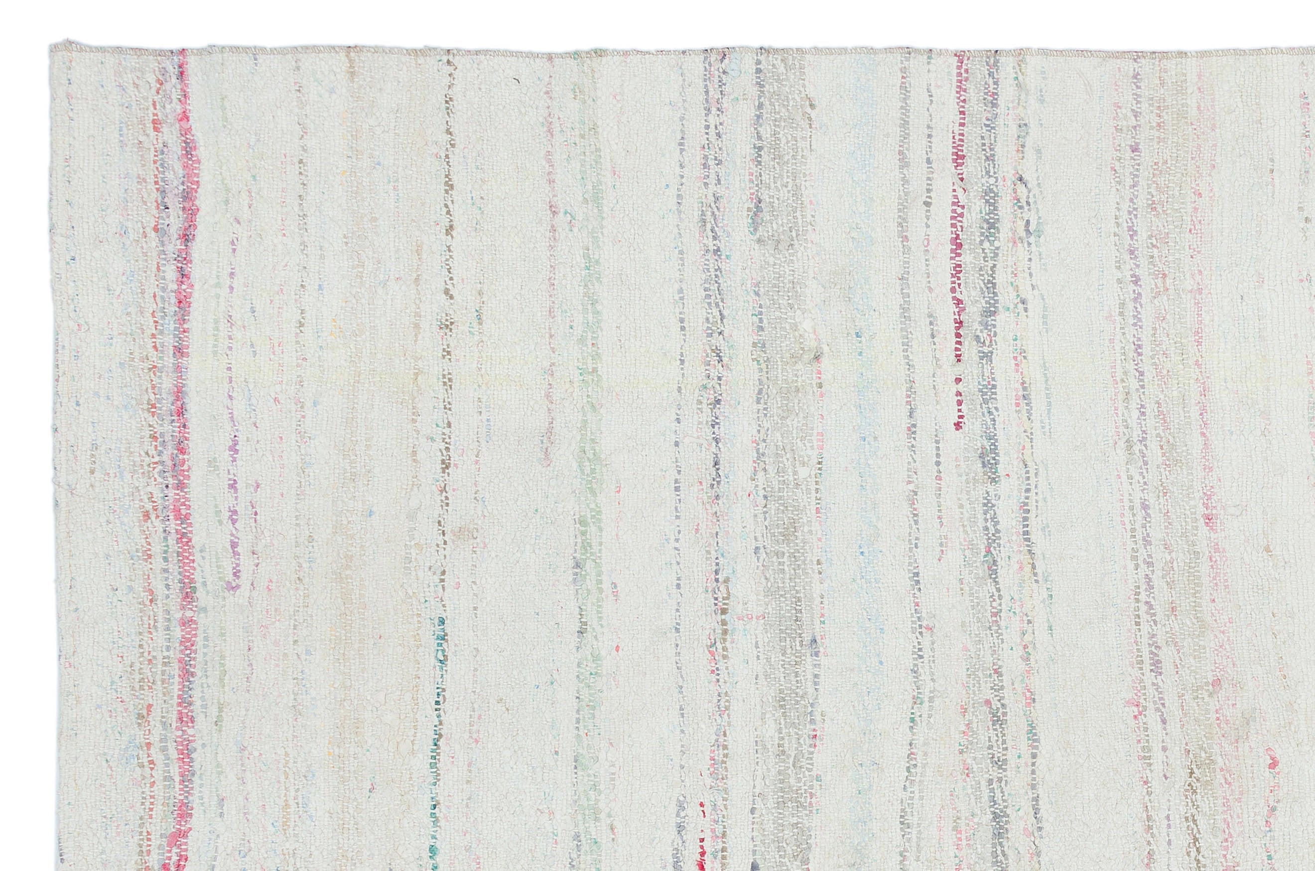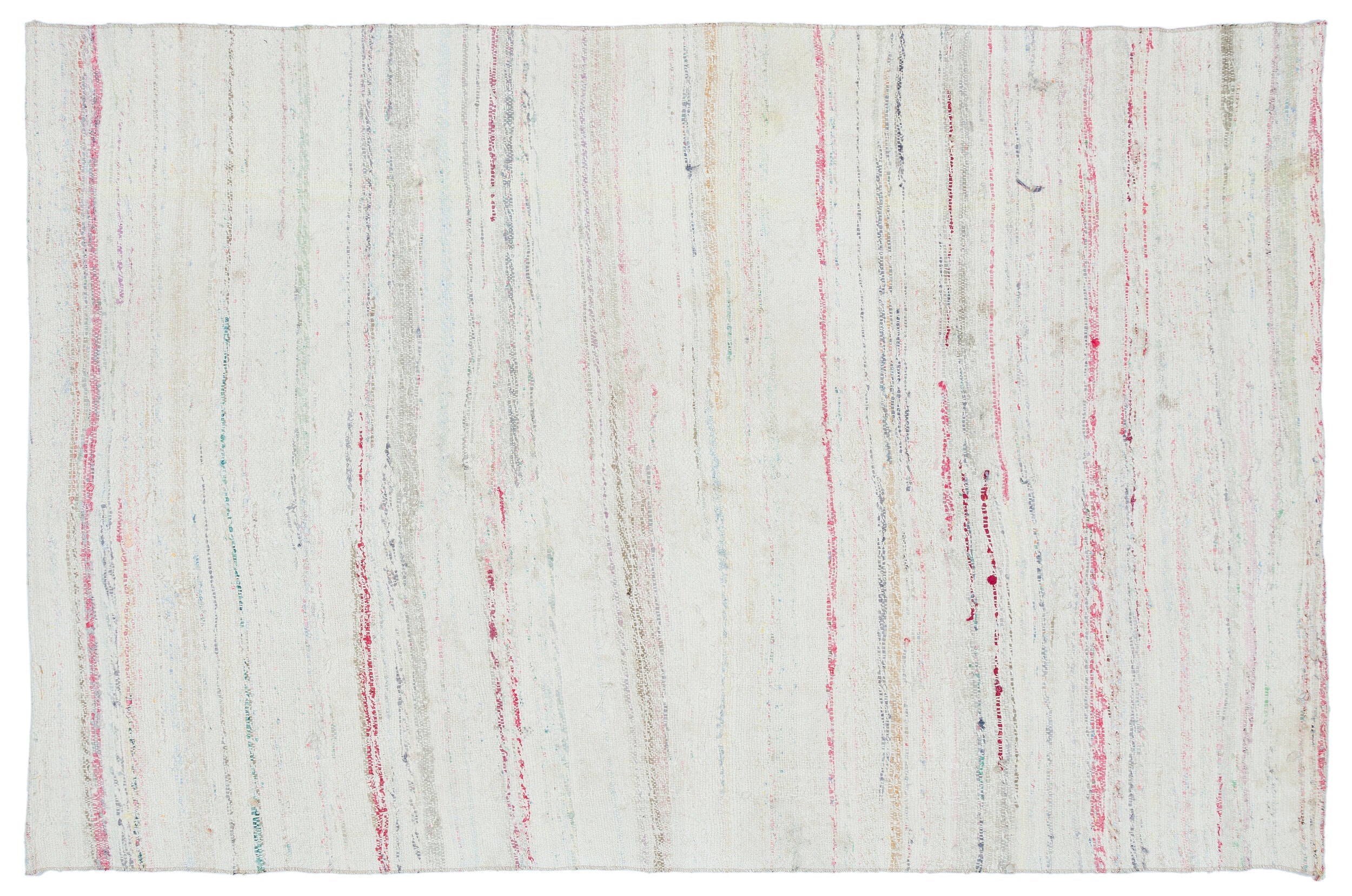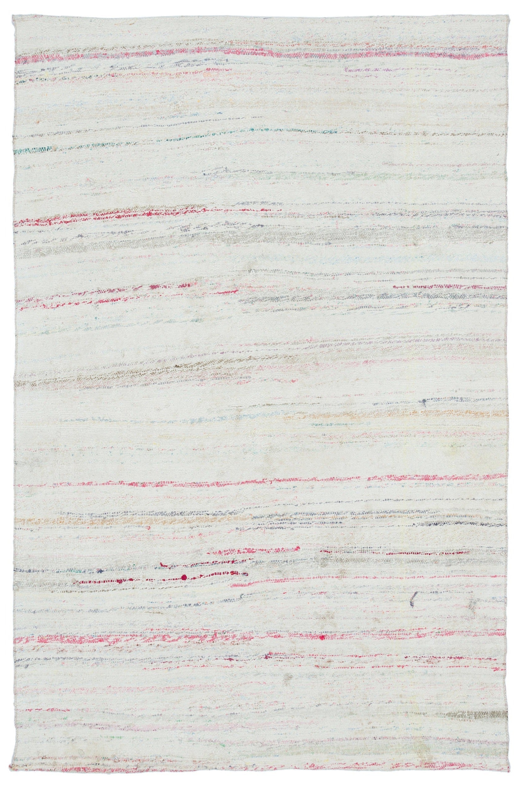 Girit Beige Striped Wool Handmade Area Rug 5'1" x 7'11"