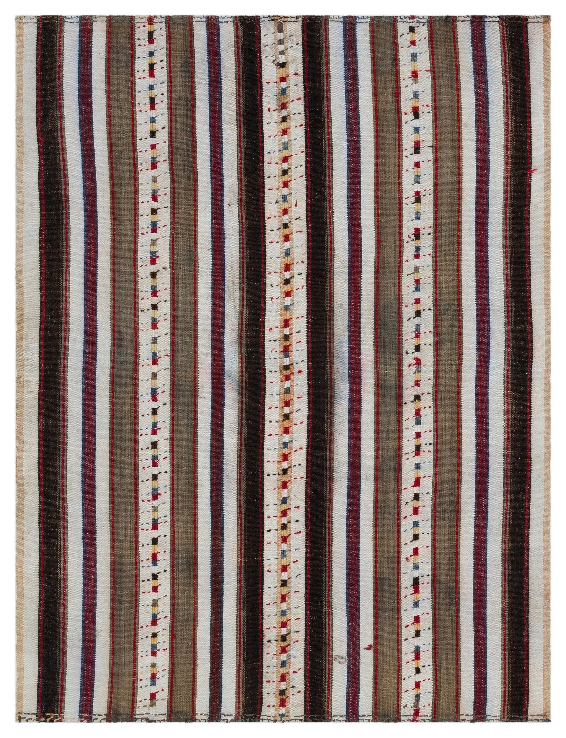 Girit Beige Striped Wool Handmade Area Rug 5'2" x 7'0"