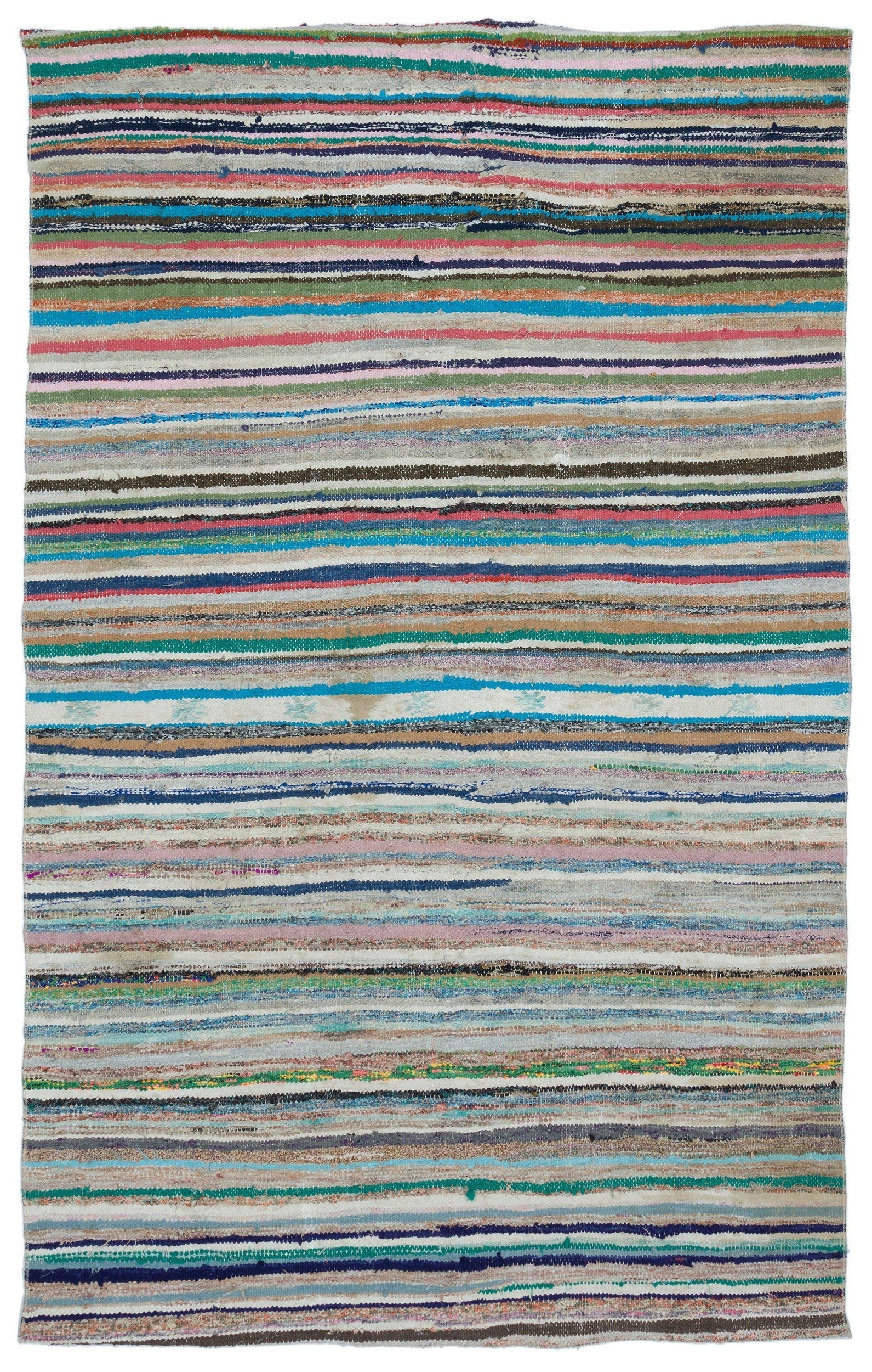 Girit Beige Striped Wool Handmade Area Rug 5'3" x 8'2"
