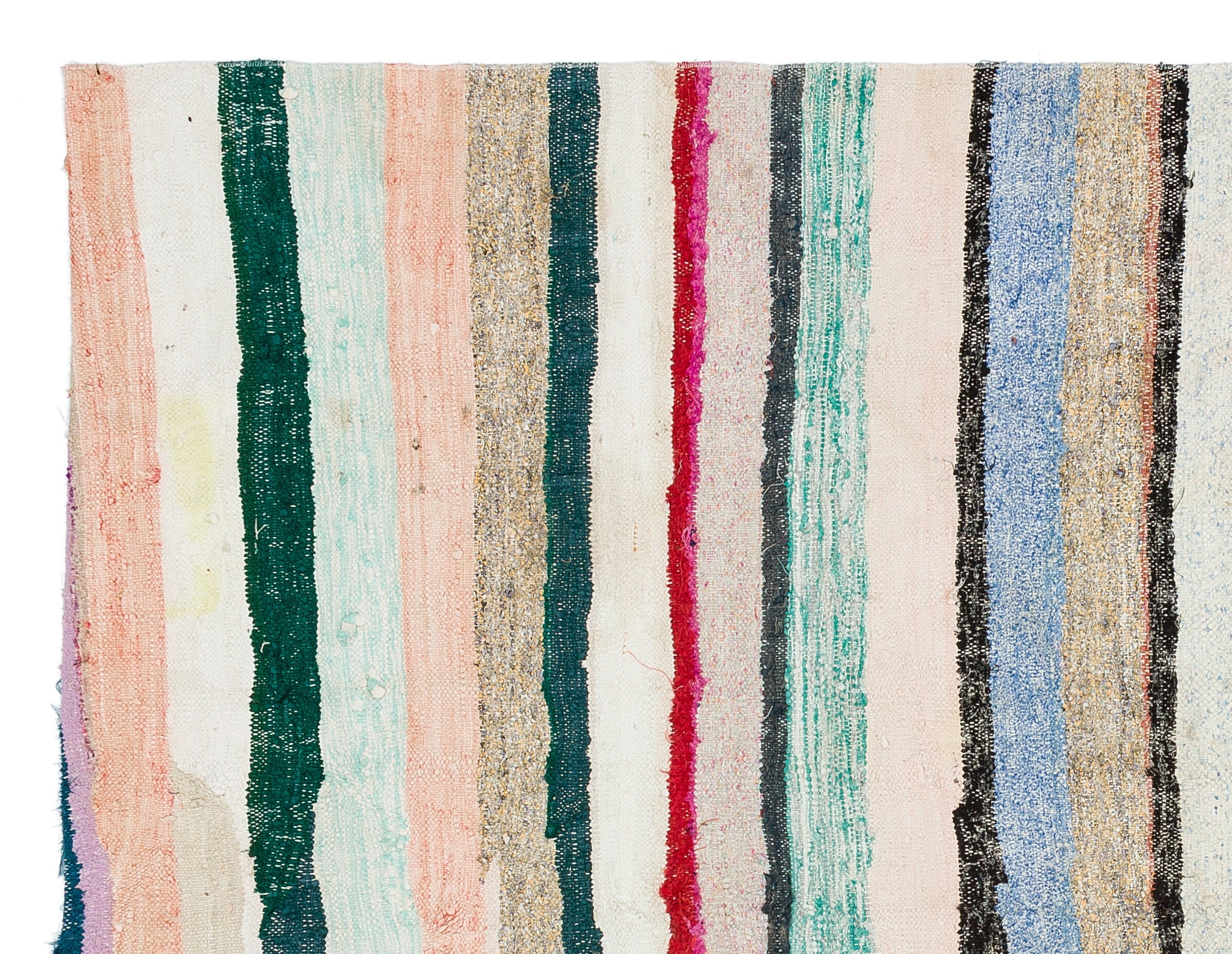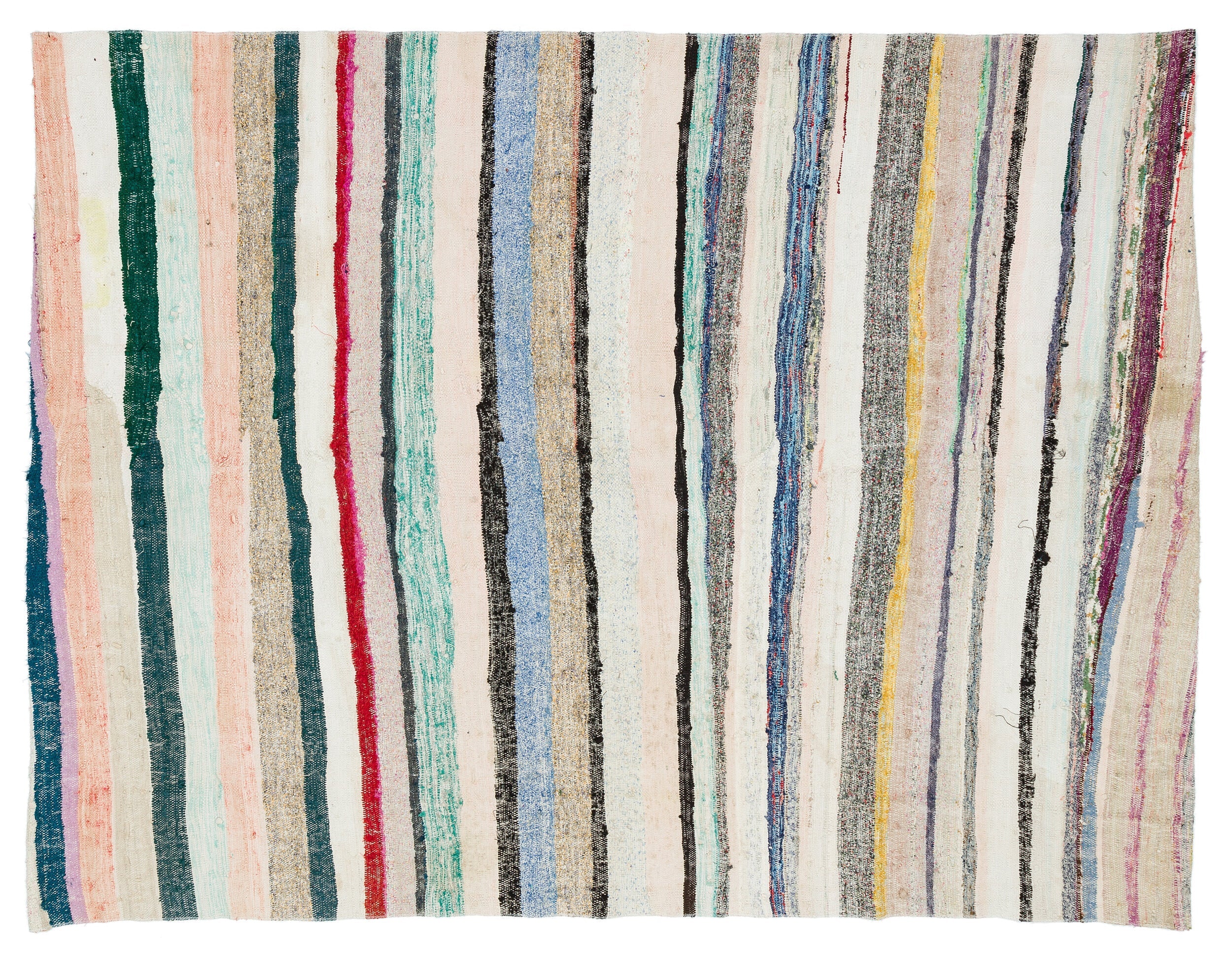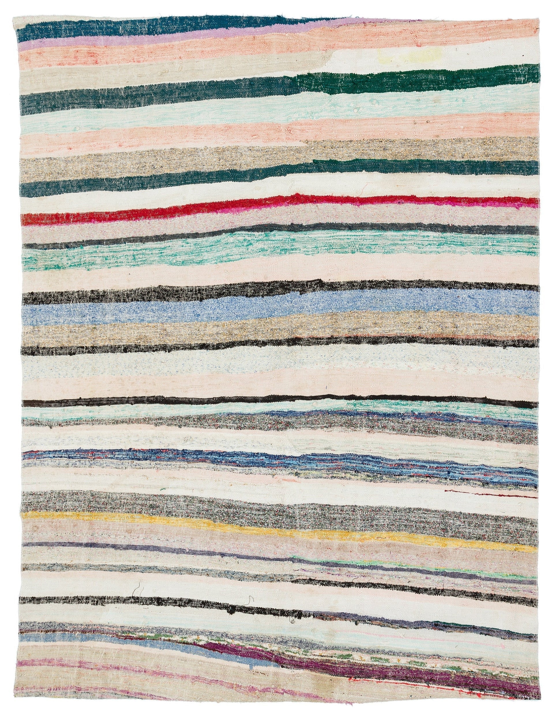Girit Beige Striped Wool Handmade Area Rug 5'4" x 6'11"