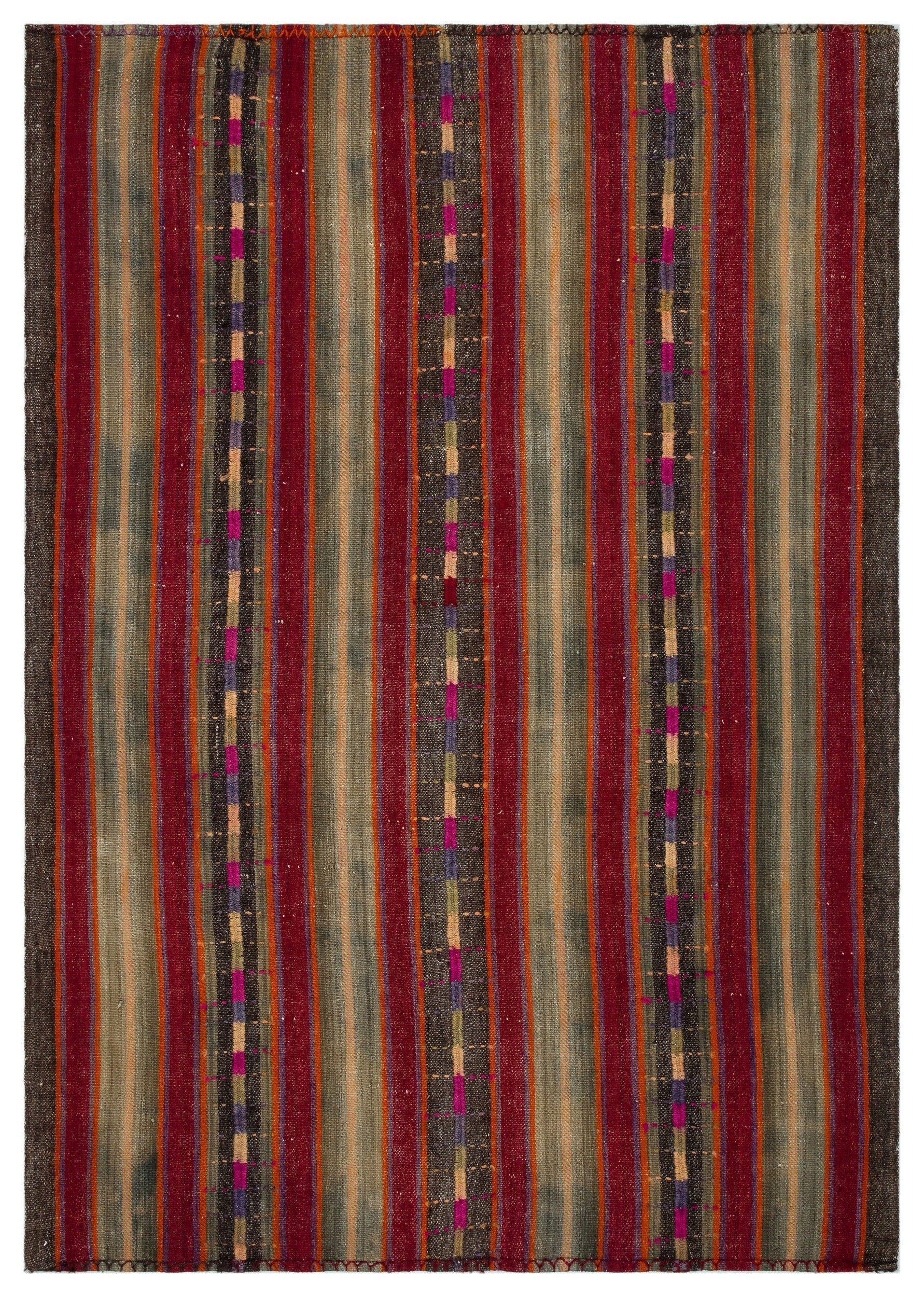 Girit Beige Striped Wool Handmade Area Rug 5'5" x 7'10"