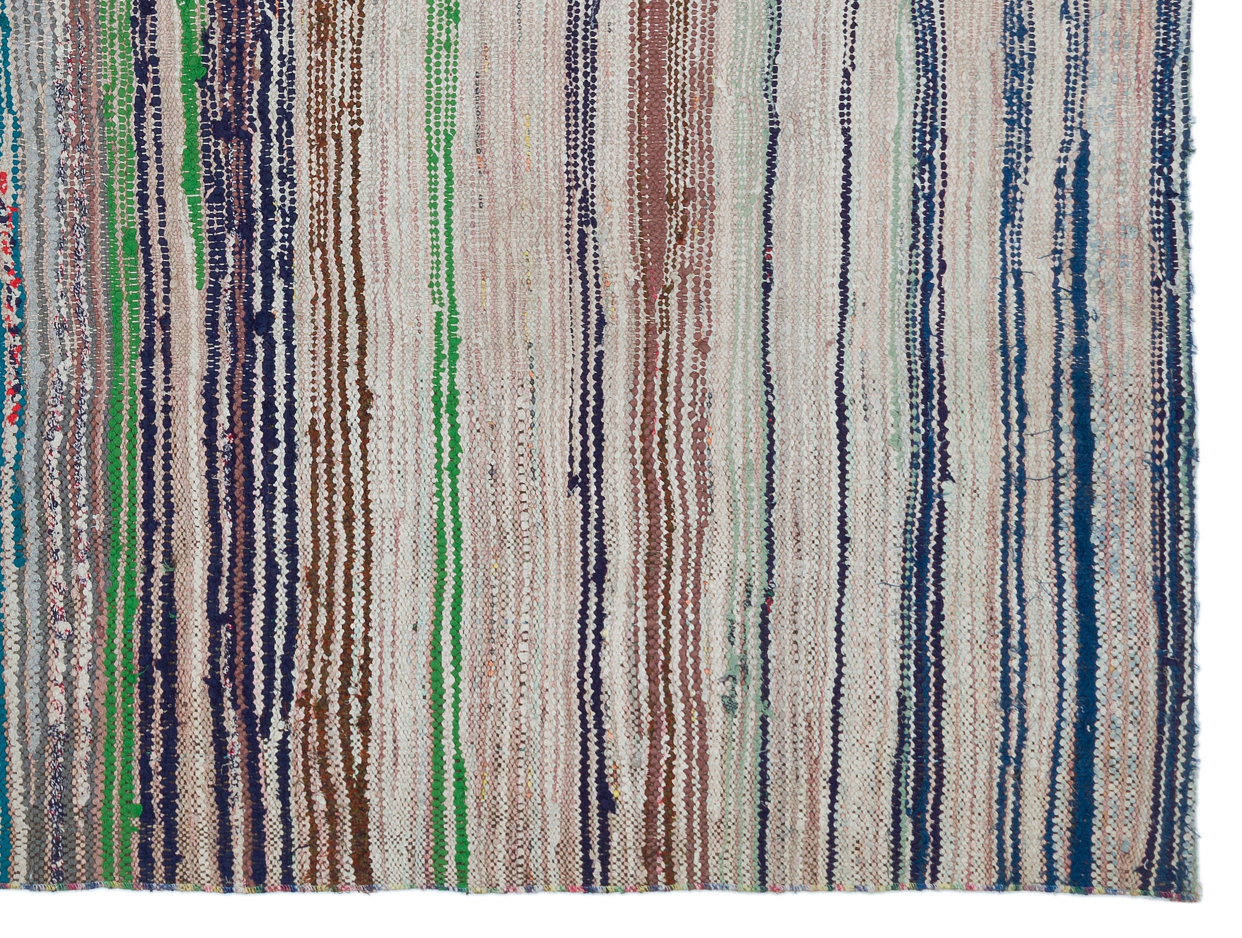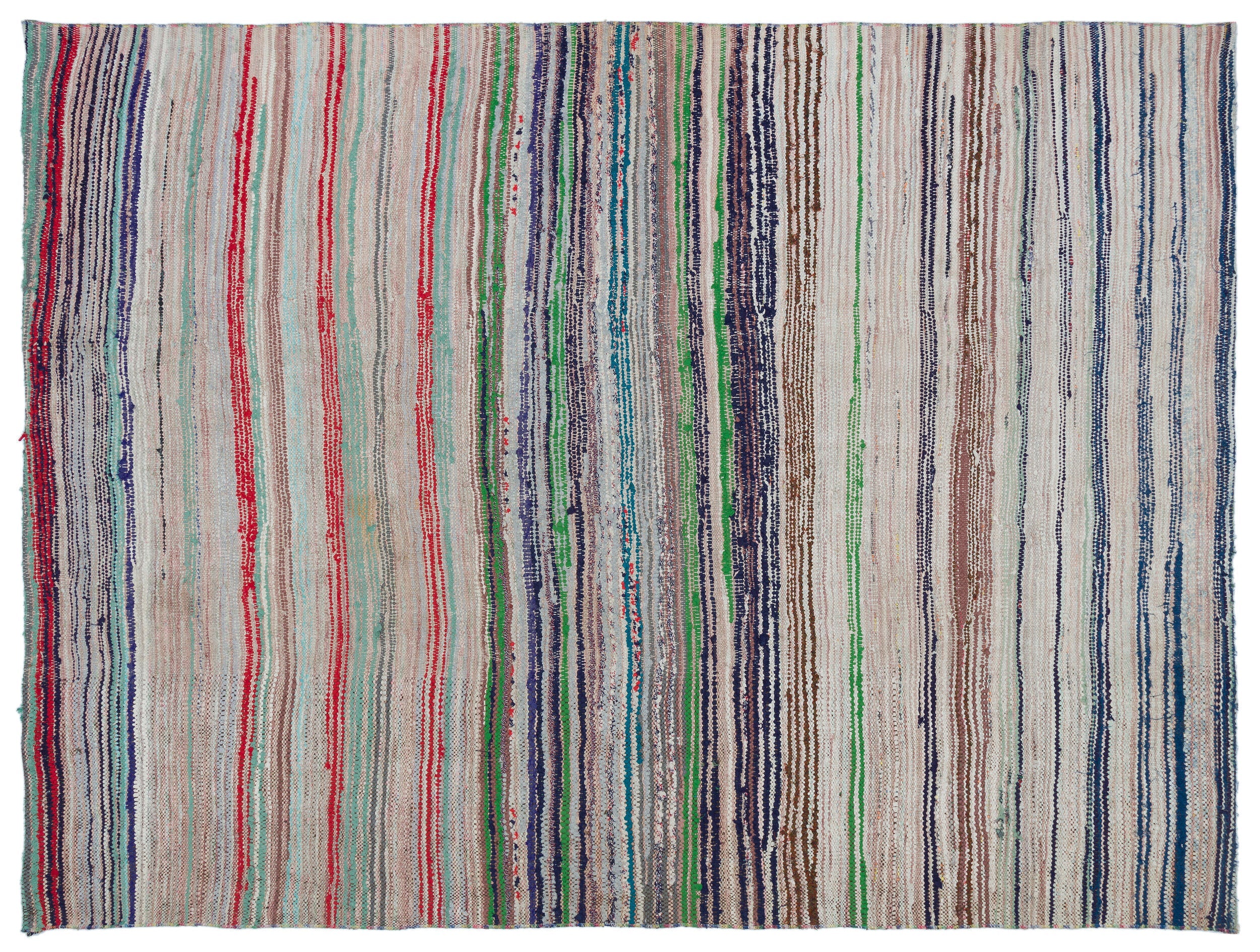 Girit Beige Striped Wool Handmade Area Rug 5'7" x 7'7"