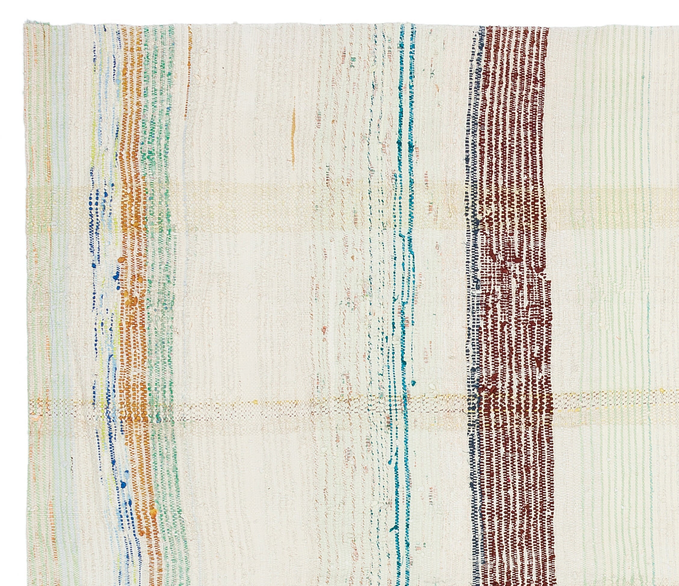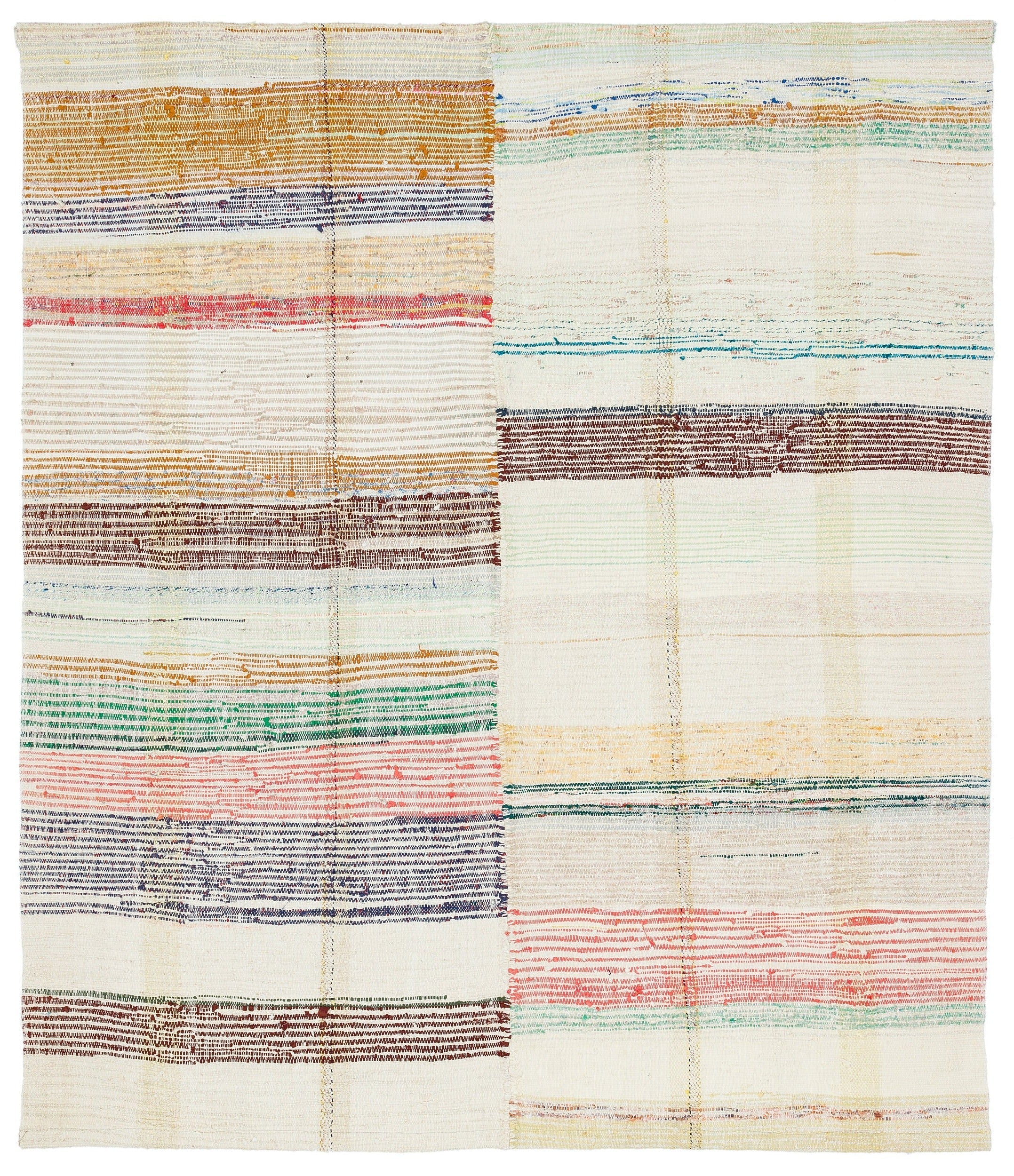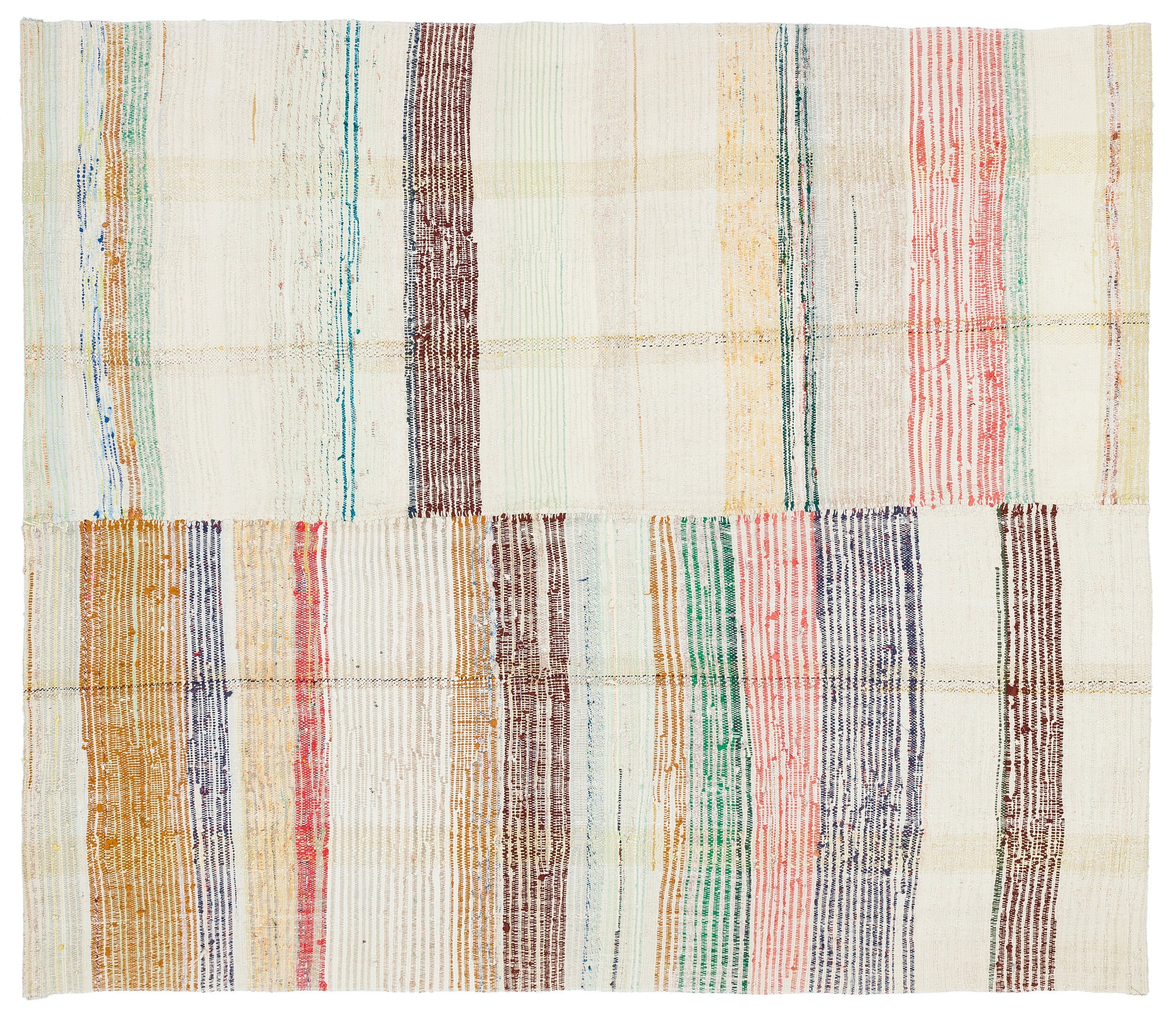 Girit Beige Striped Wool Handmade Area Rug 5'8" x 6'7"