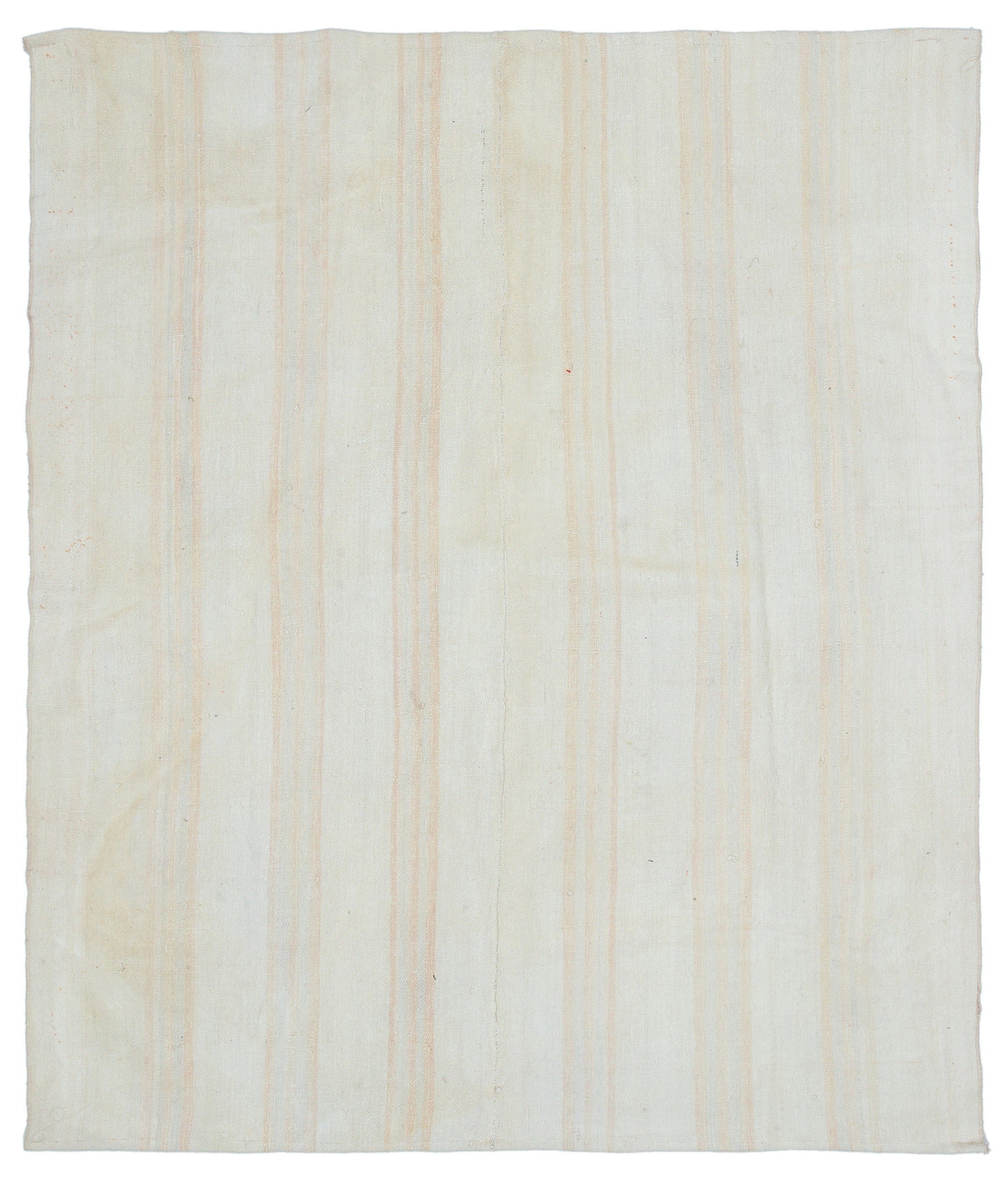 Girit Beige Striped Wool Handmade Area Rug 5'9" x 6'11"
