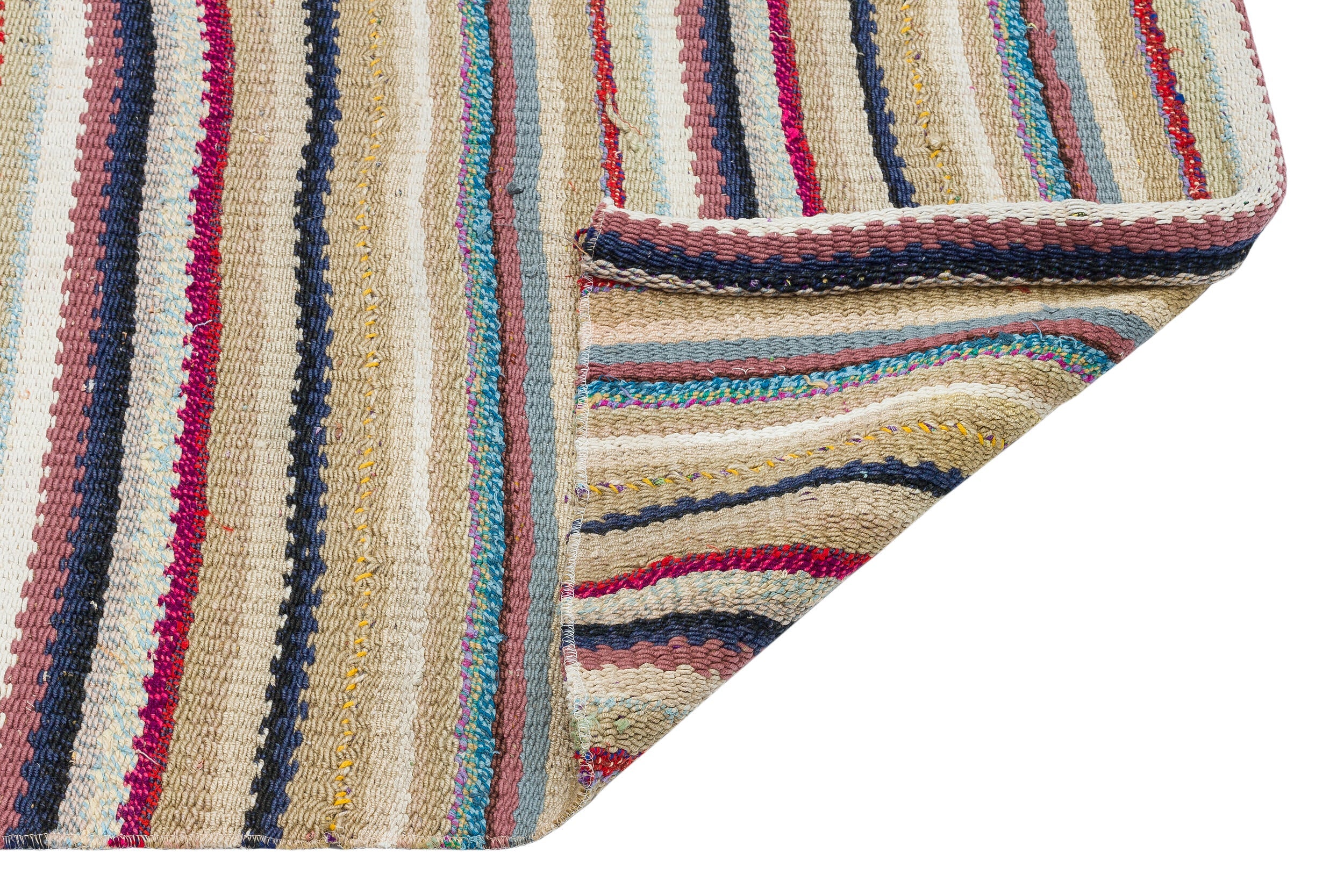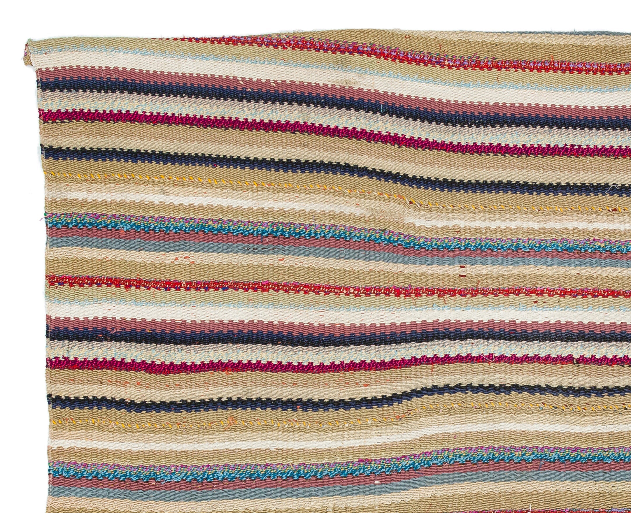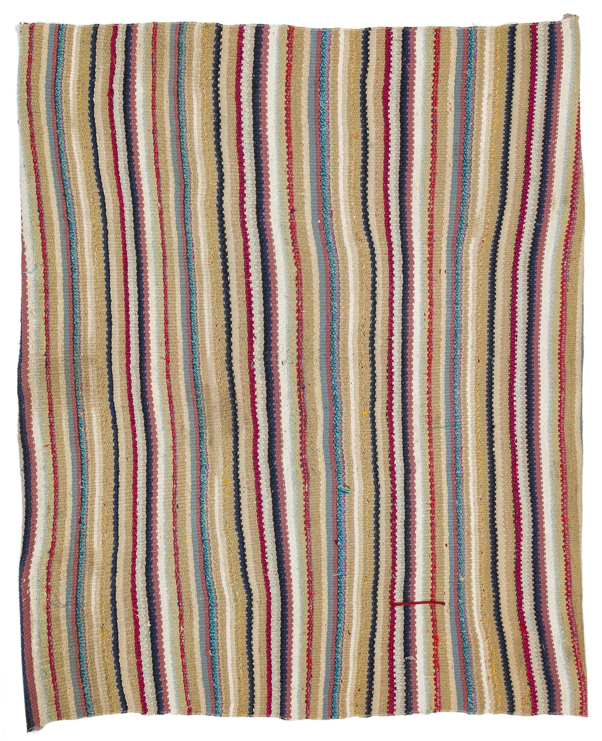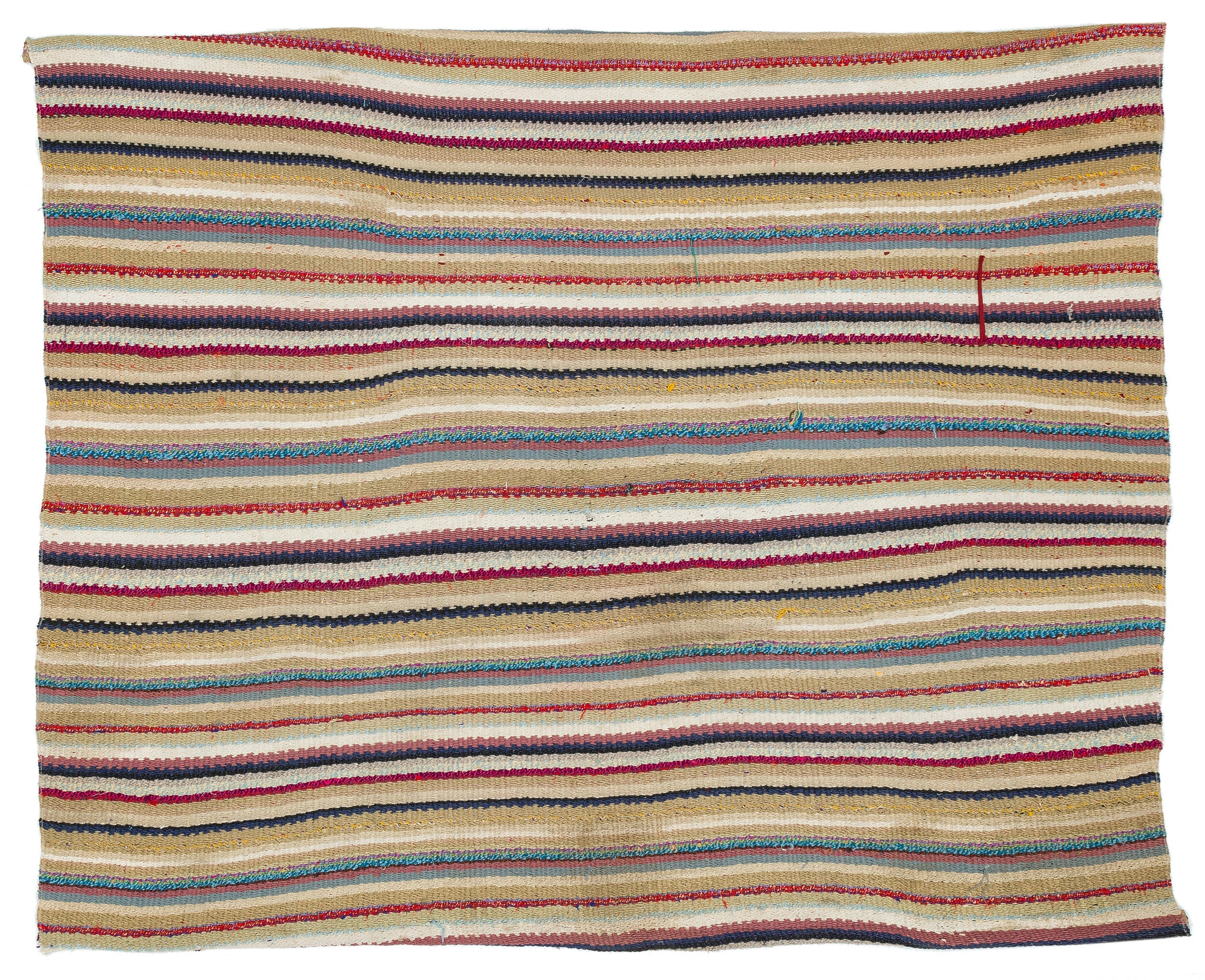 Girit Beige Striped Wool Handmade Area Rug 6'3" x 5'1"