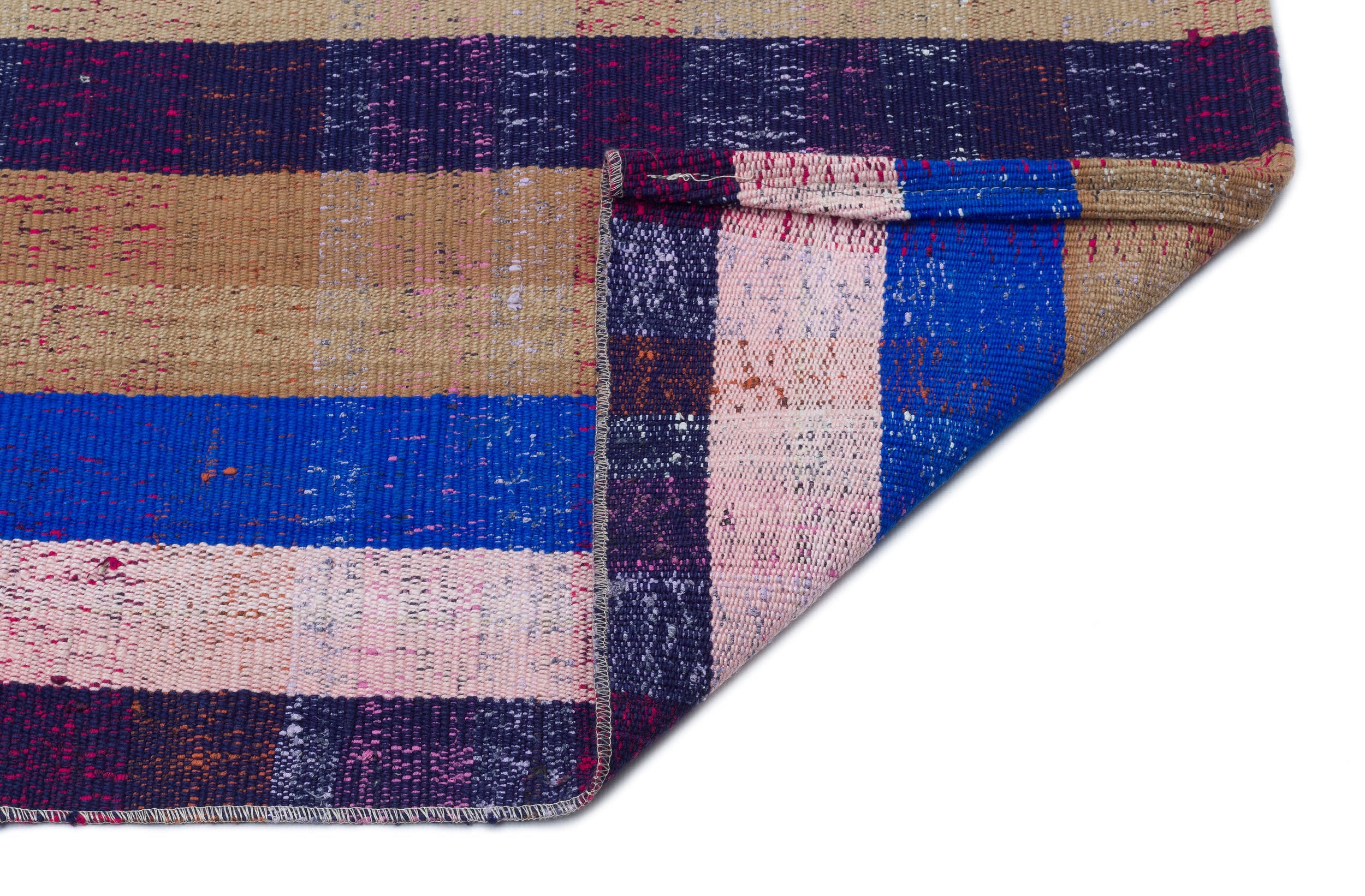 Girit Blue Striped Wool Handmade Area Rug 3'11" x 10'4"