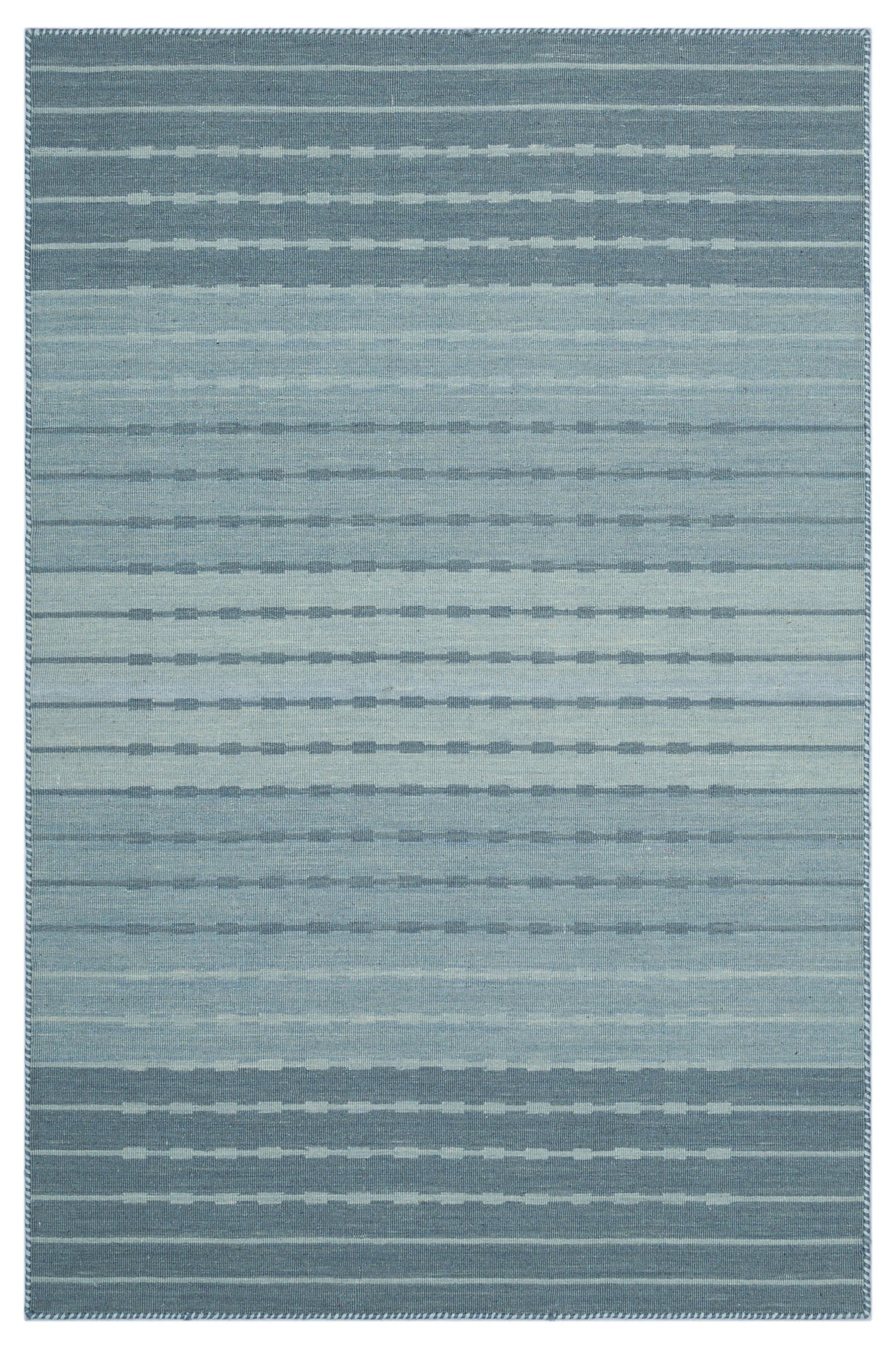 Girit Blue Striped Wool Handmade Area Rug 4'0" x 6'2"