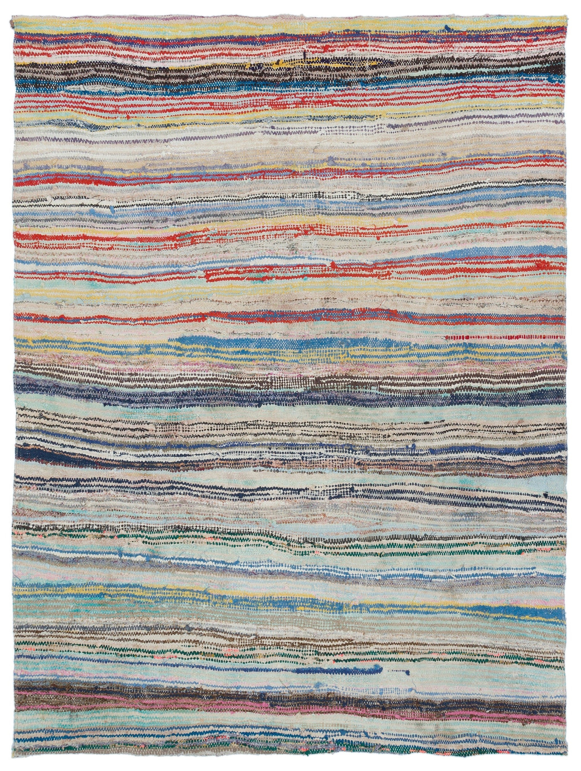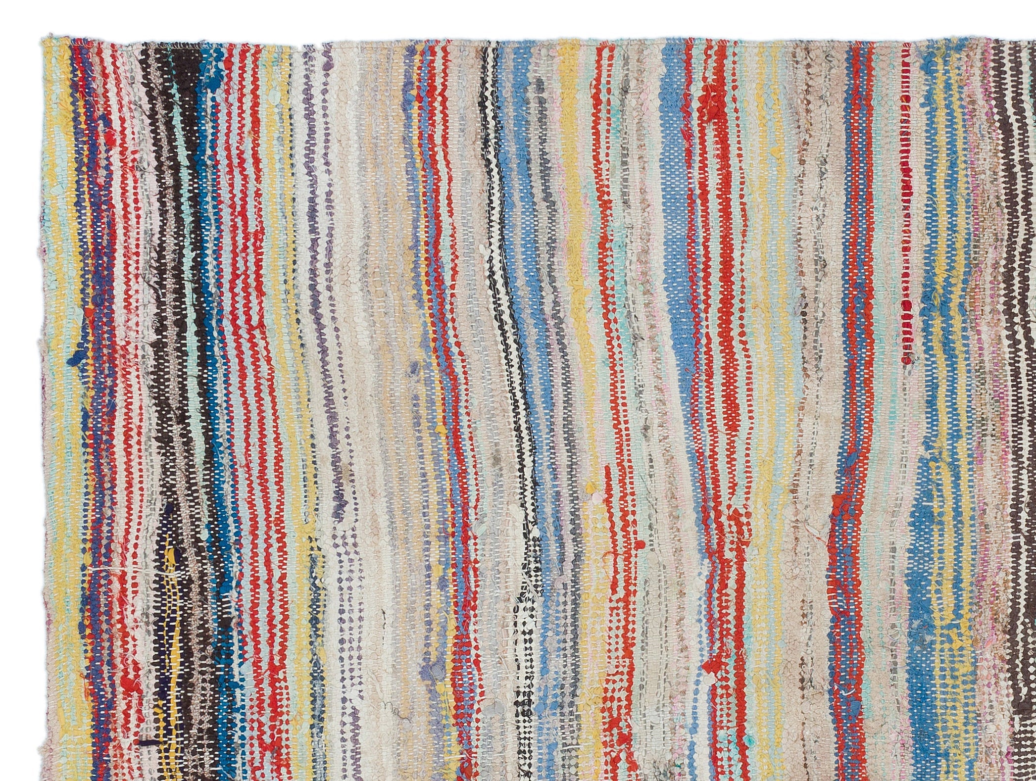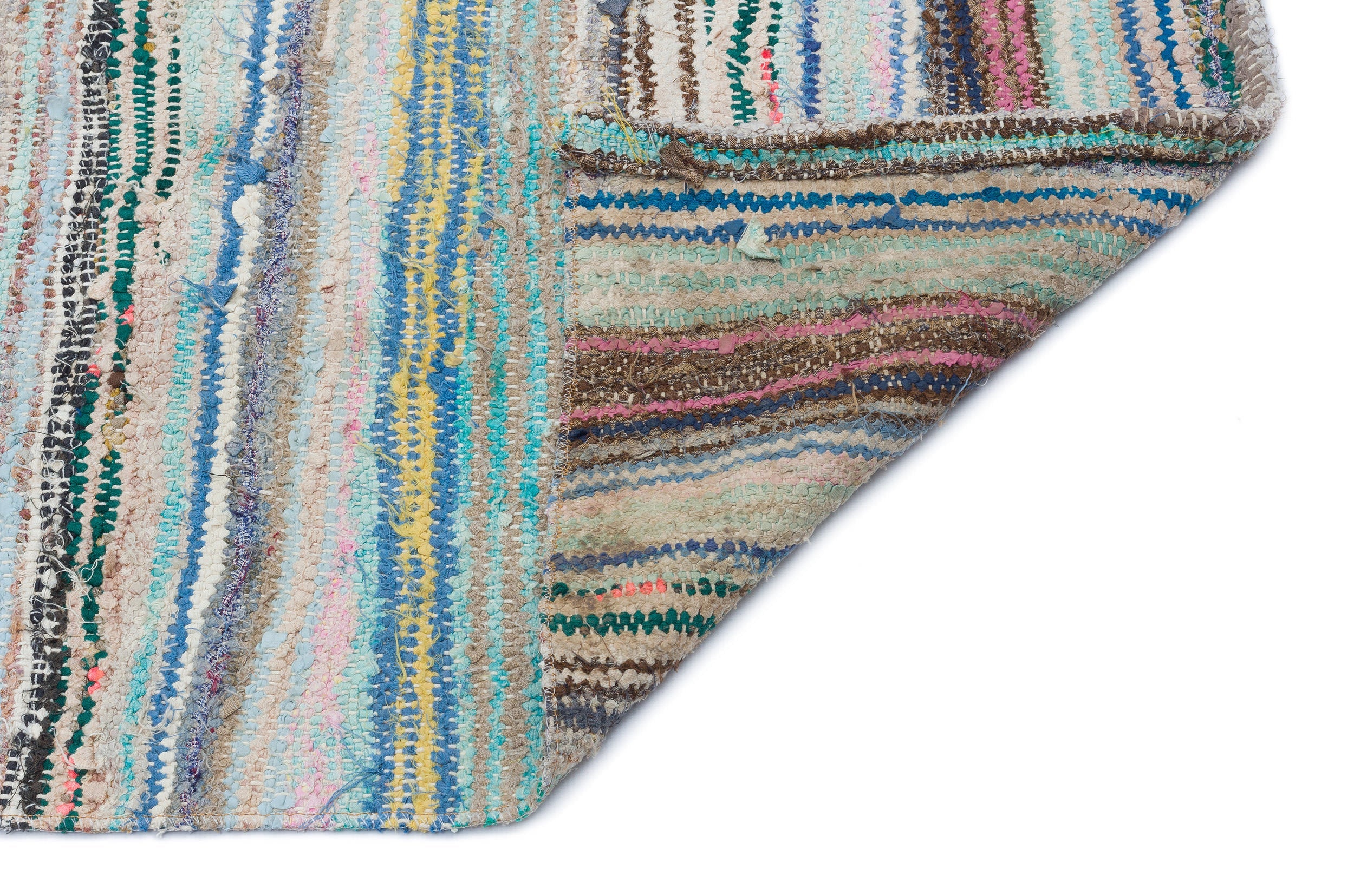 Girit Blue Striped Wool Handmade Area Rug 4'7" x 6'1"
