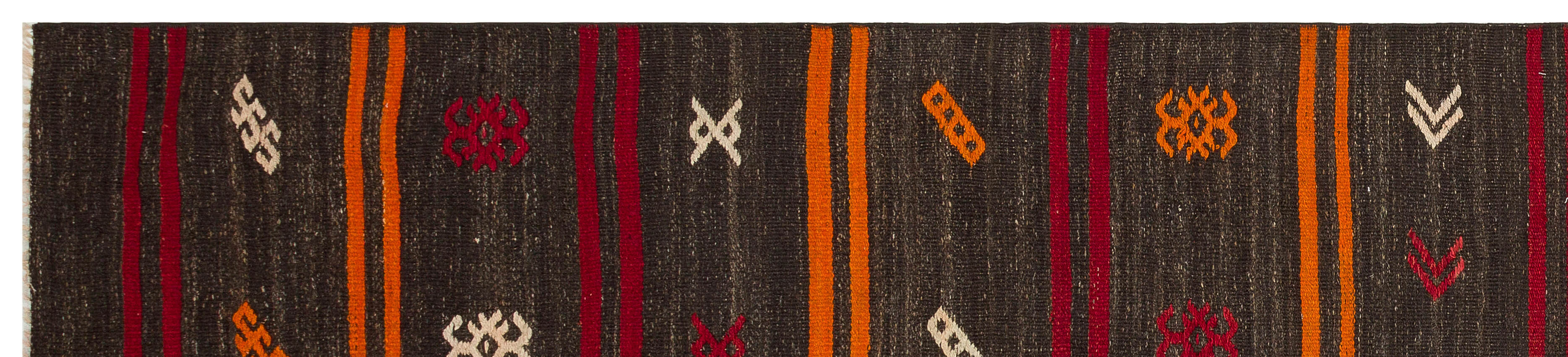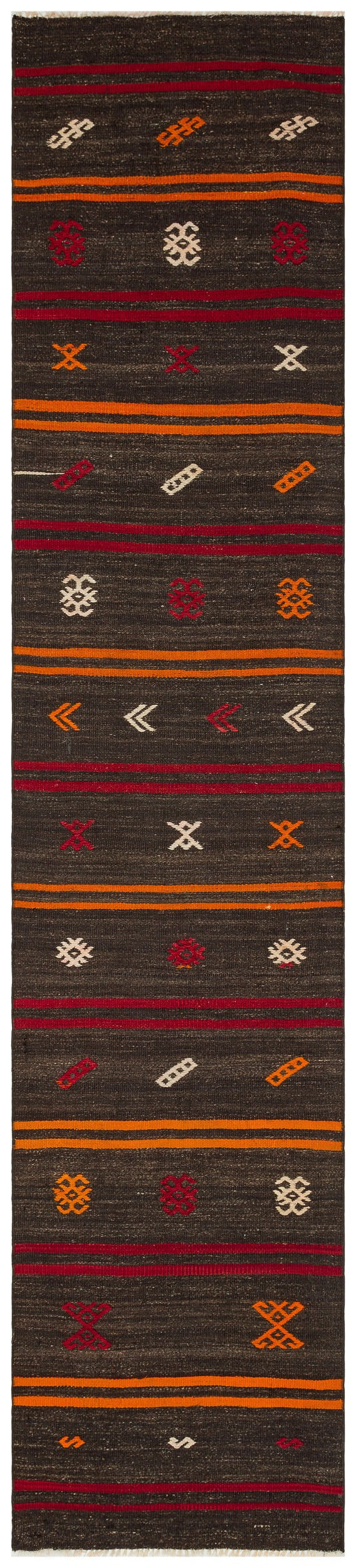 Girit Brown Striped Wool Handmade Area Rug 2'5" x 11'3"