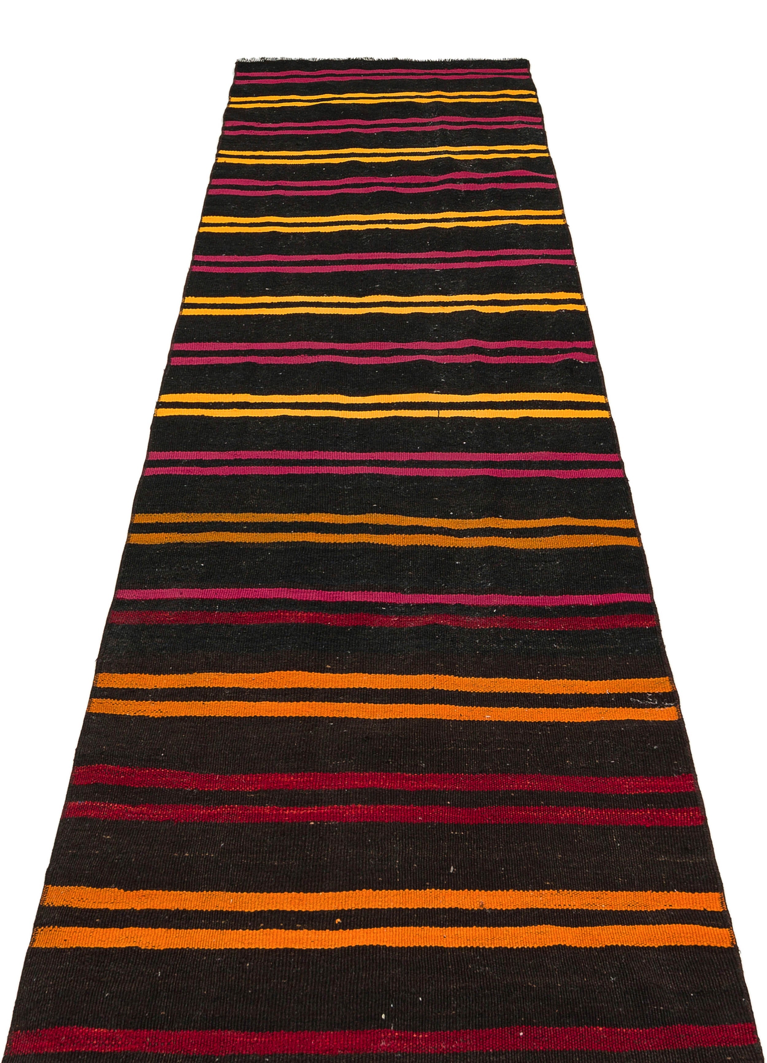 Girit Brown Striped Wool Handmade Area Rug 2'8" x 9'7"