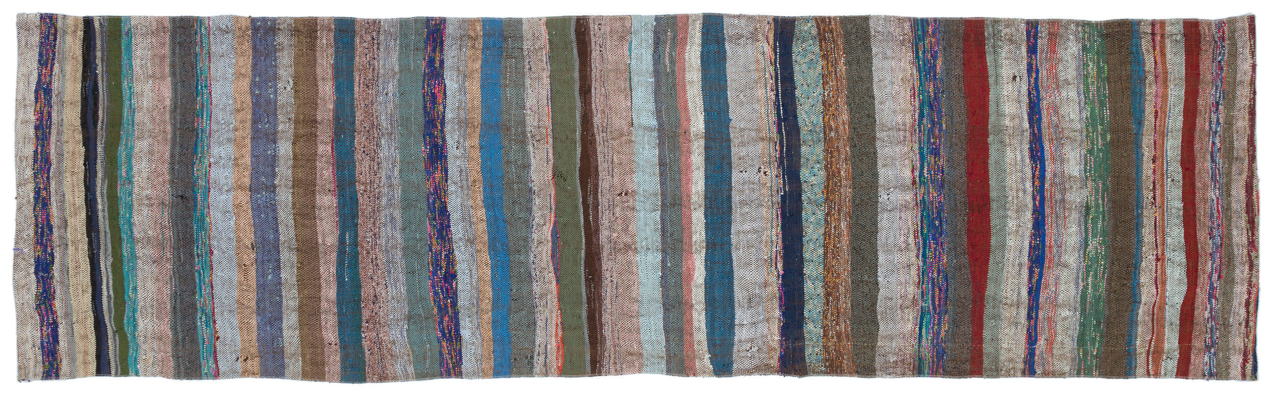 Girit Brown Striped Wool Handmade Area Rug 3'5" x 11'5"