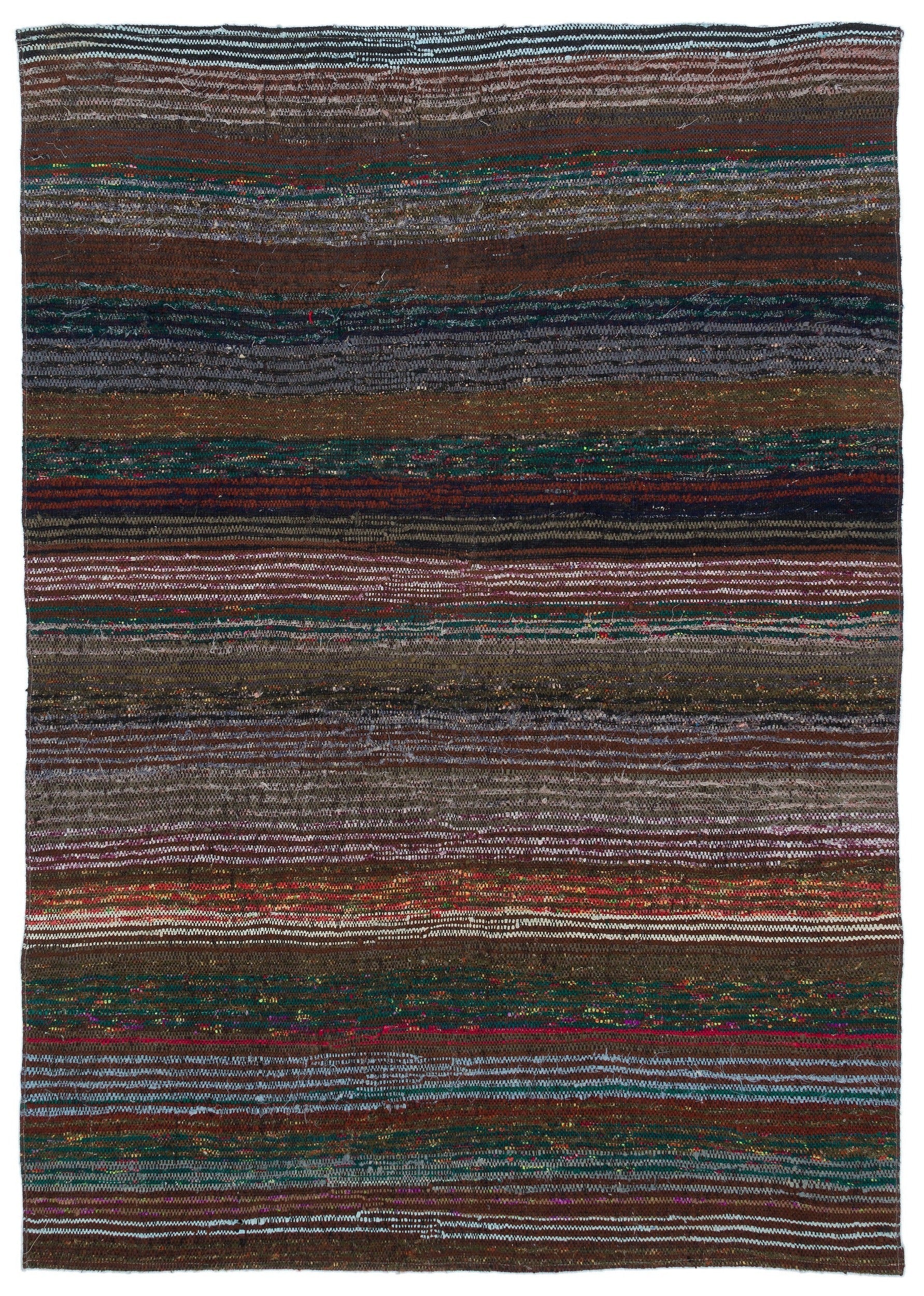 Girit Brown Striped Wool Handmade Area Rug 4'7" x 6'8"