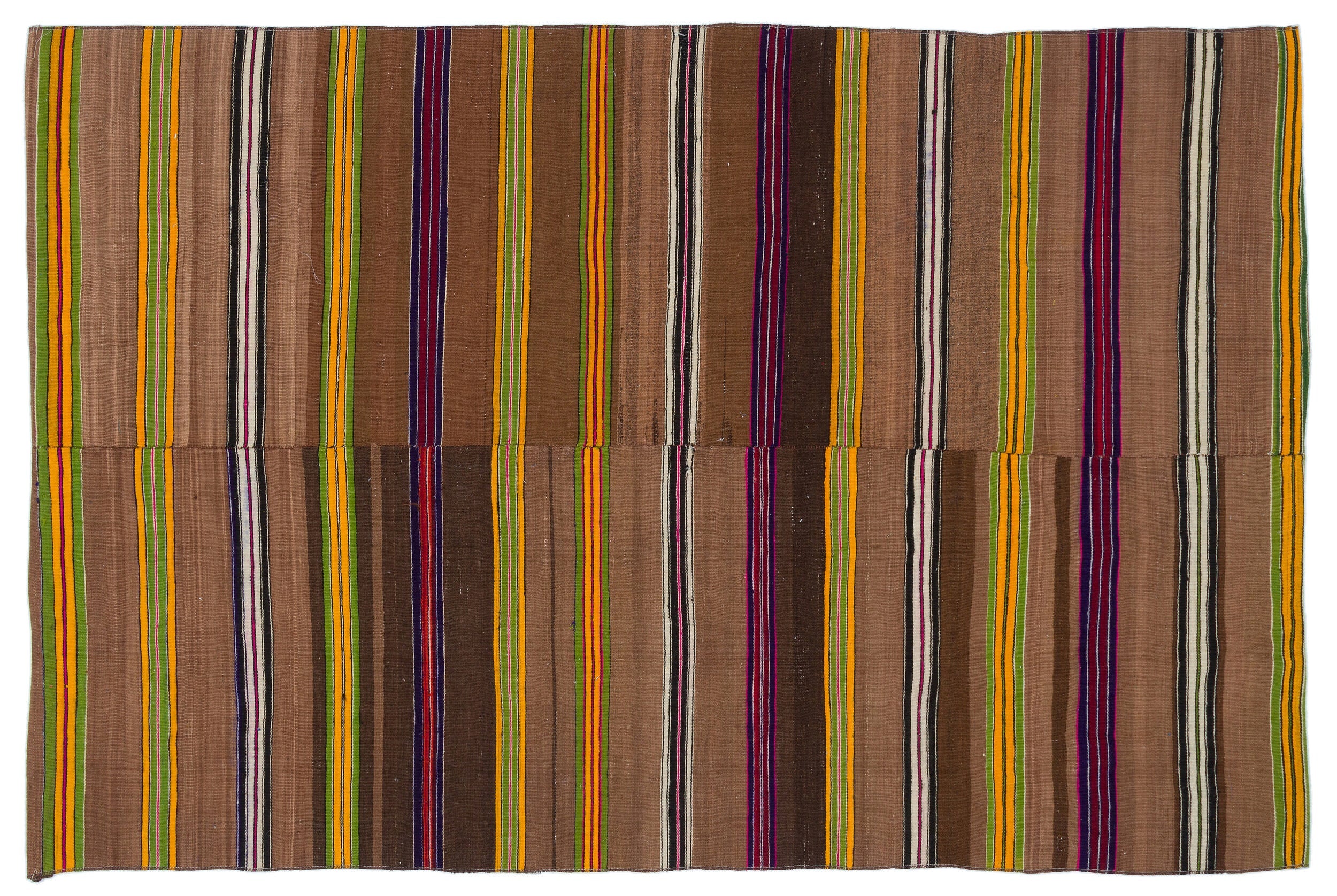 Girit Brown Striped Wool Handmade Area Rug 4'8" x 6'11"