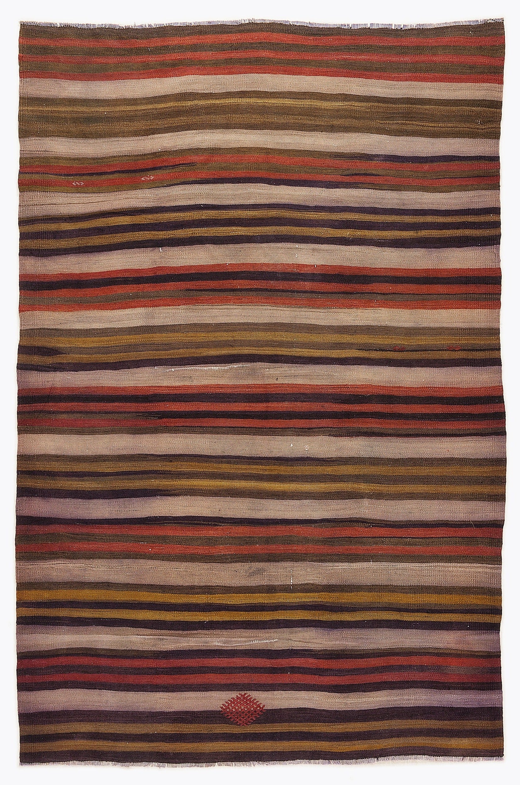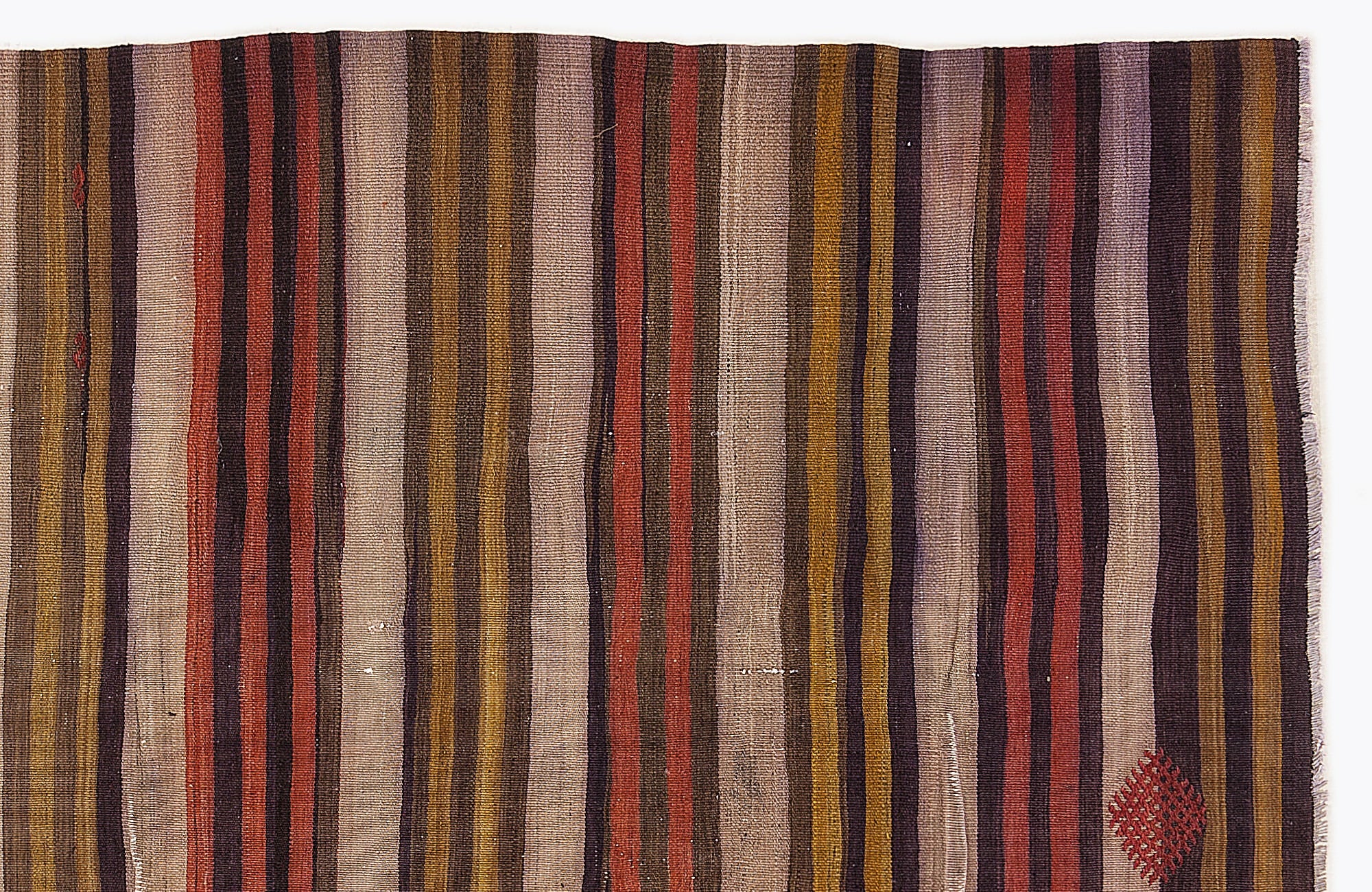Girit Brown Striped Wool Handmade Area Rug 5'0" x 7'7"
