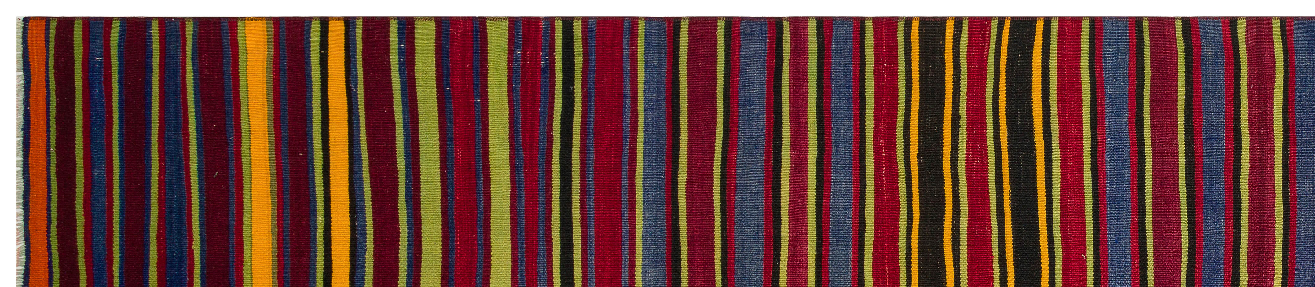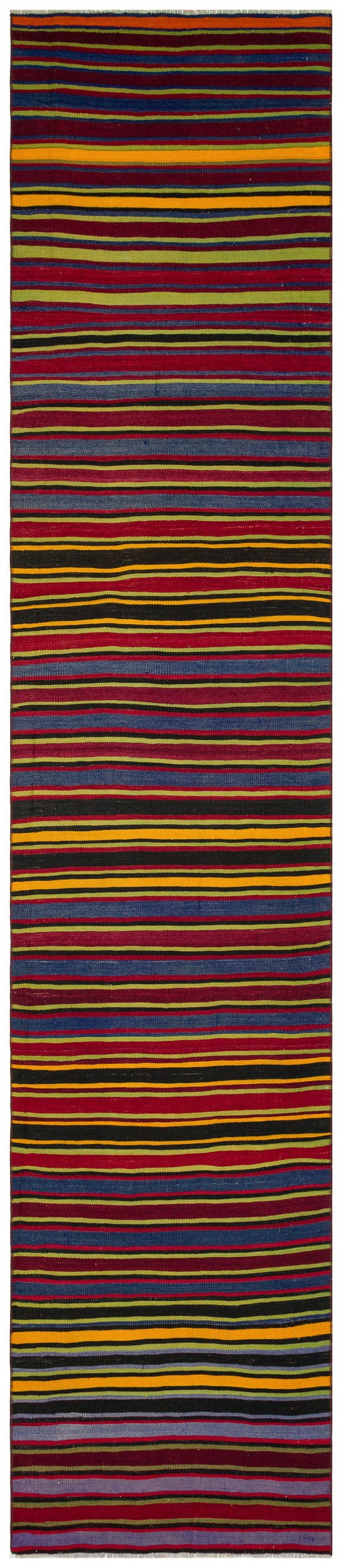 Girit Burgundy Striped Wool Handmade Area Rug 2'9" x 13'2"