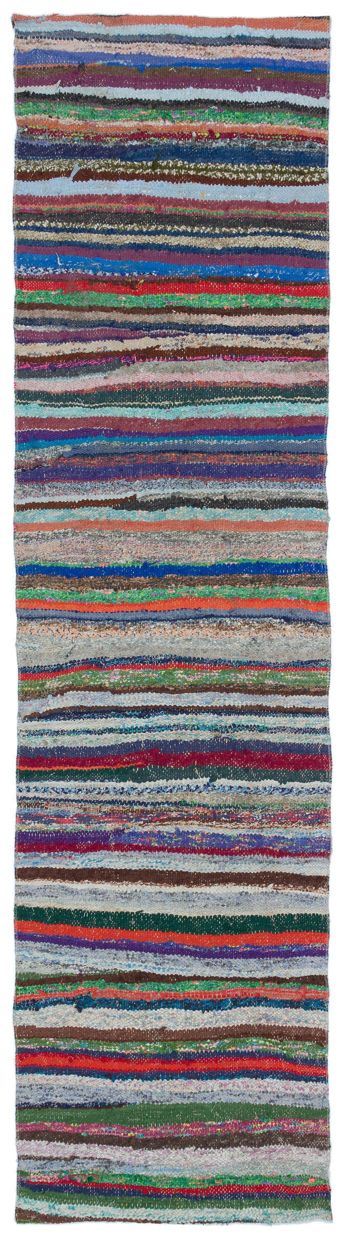 Girit Grey Striped Wool Handmade Area Rug 2'6" x 9'3"