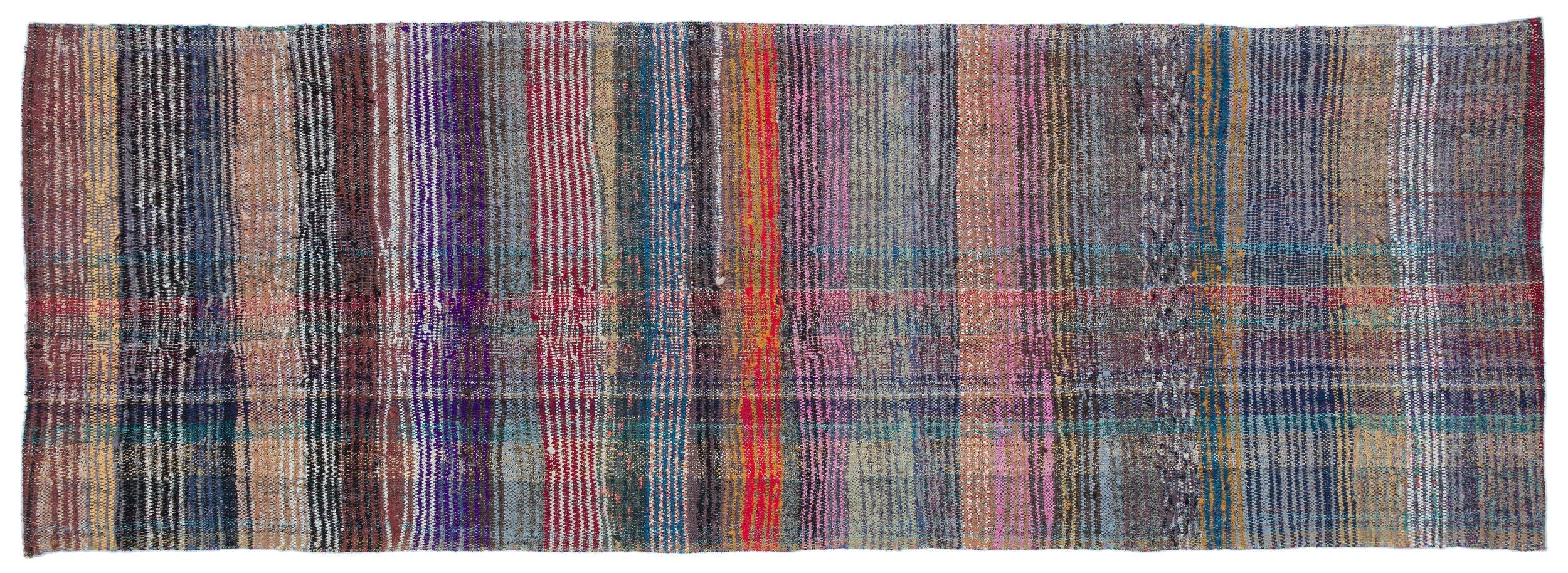 Girit Grey Striped Wool Handmade Area Rug 3'5" x 10'2"
