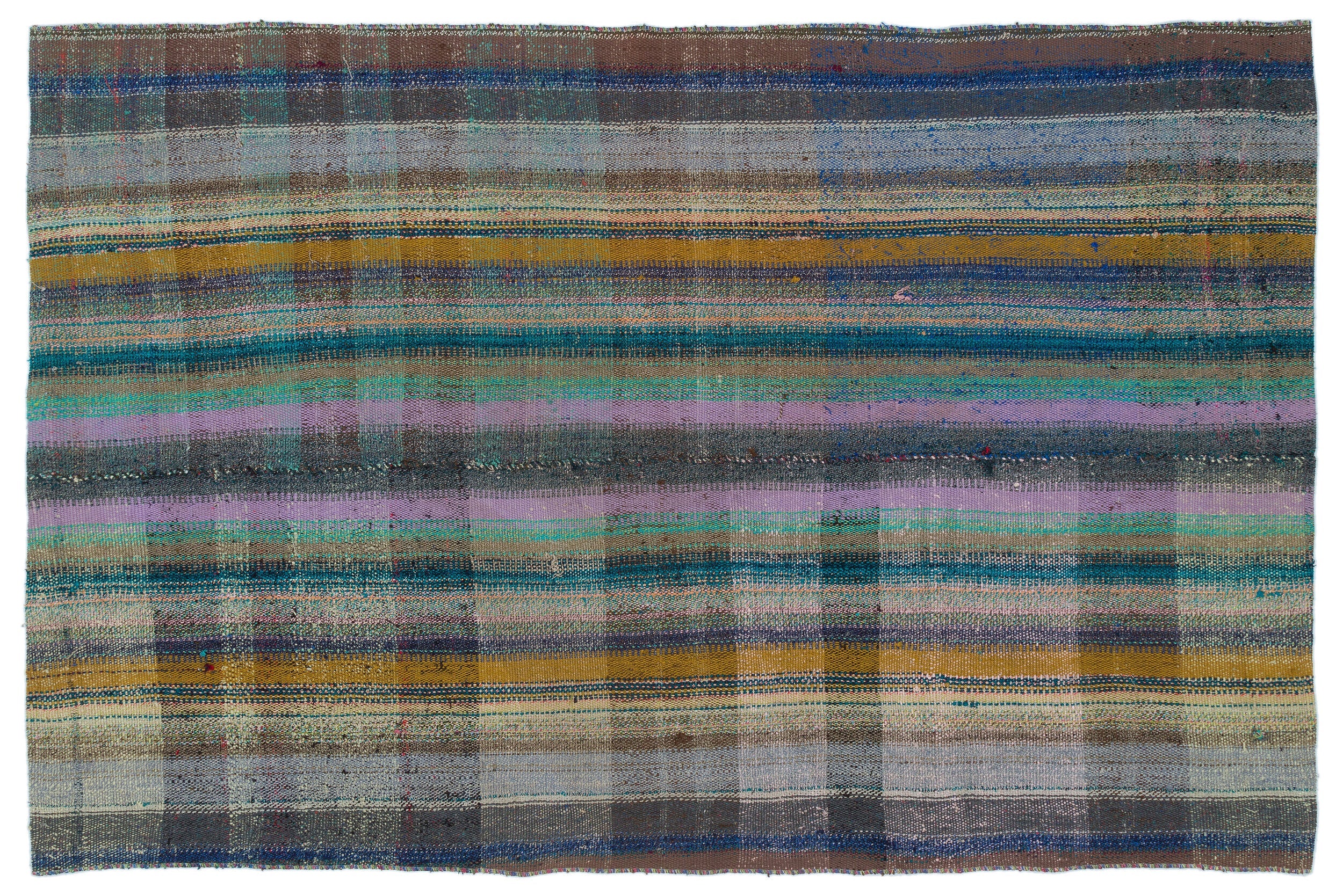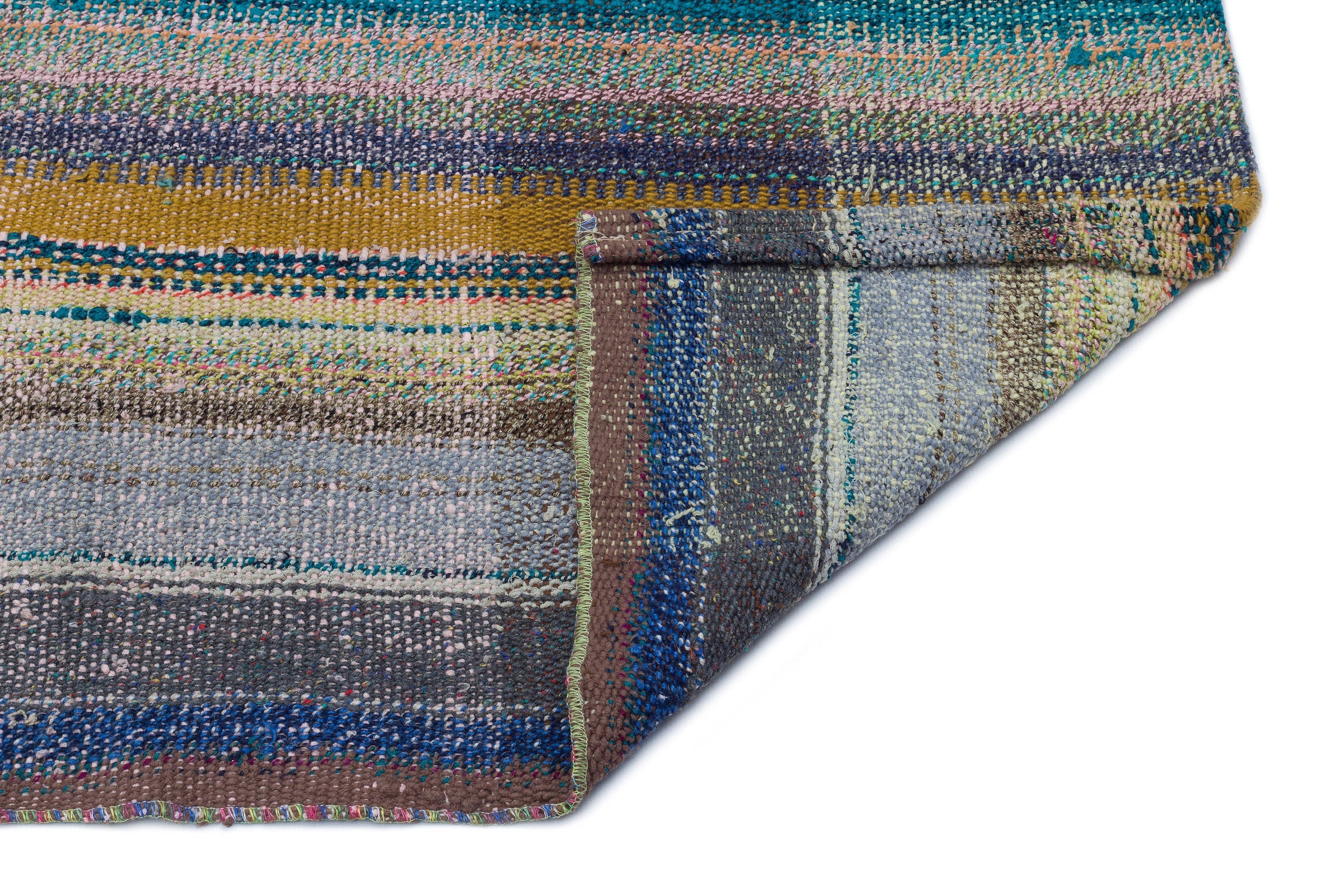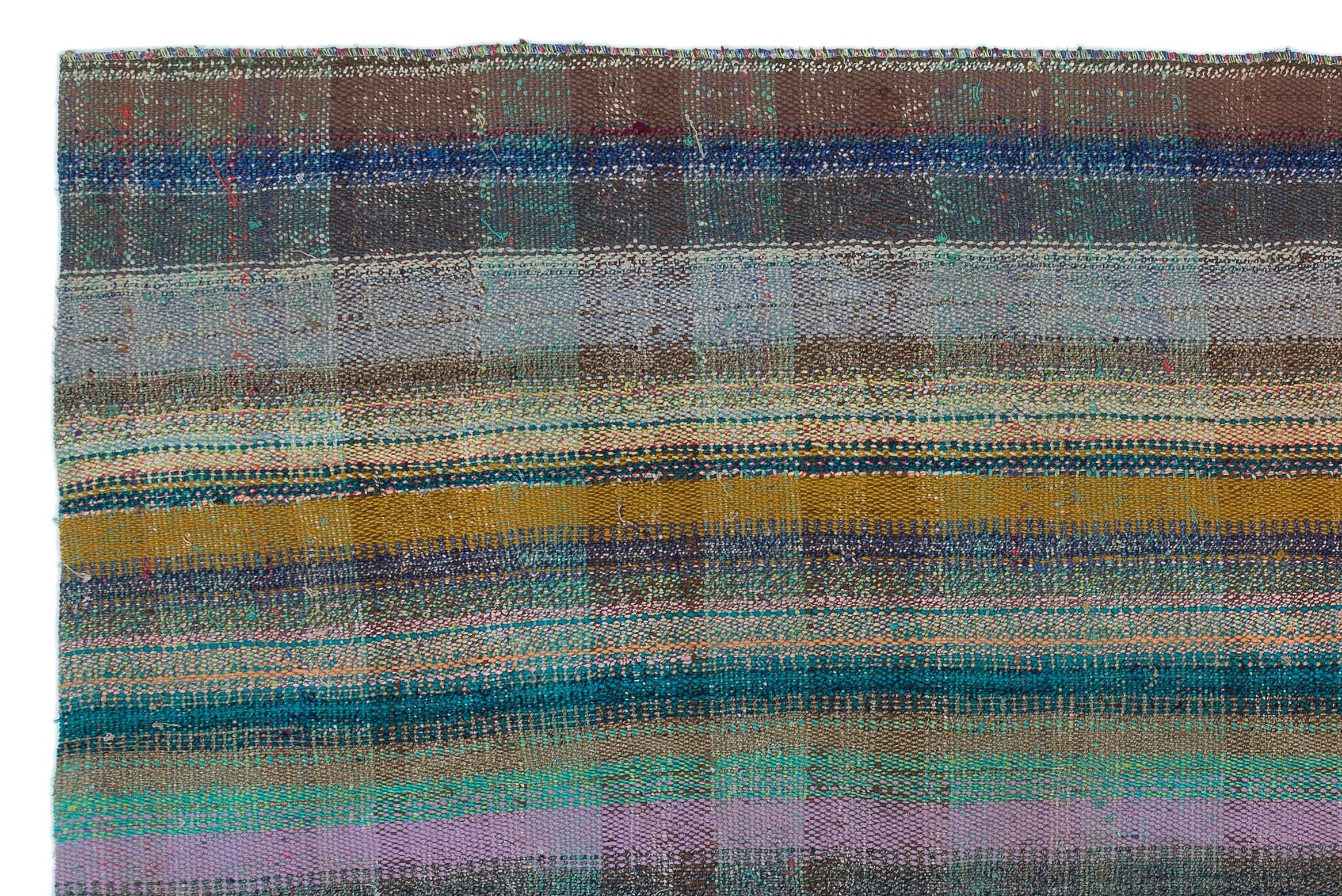Girit Grey Striped Wool Handmade Area Rug 4'7" x 6'11"