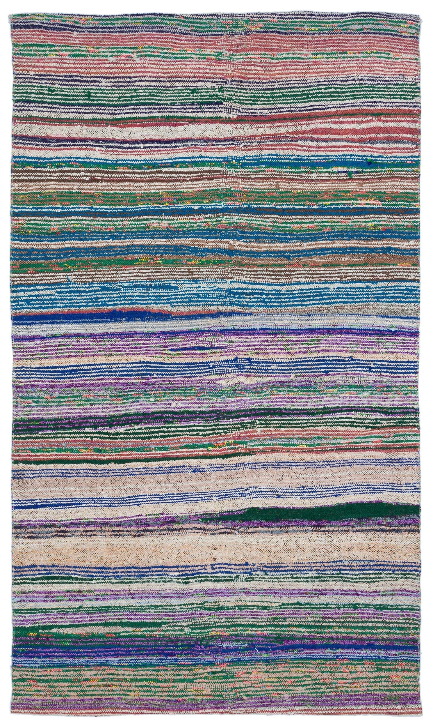 Girit Grey Striped Wool Handmade Area Rug 4'7" x 7'11"