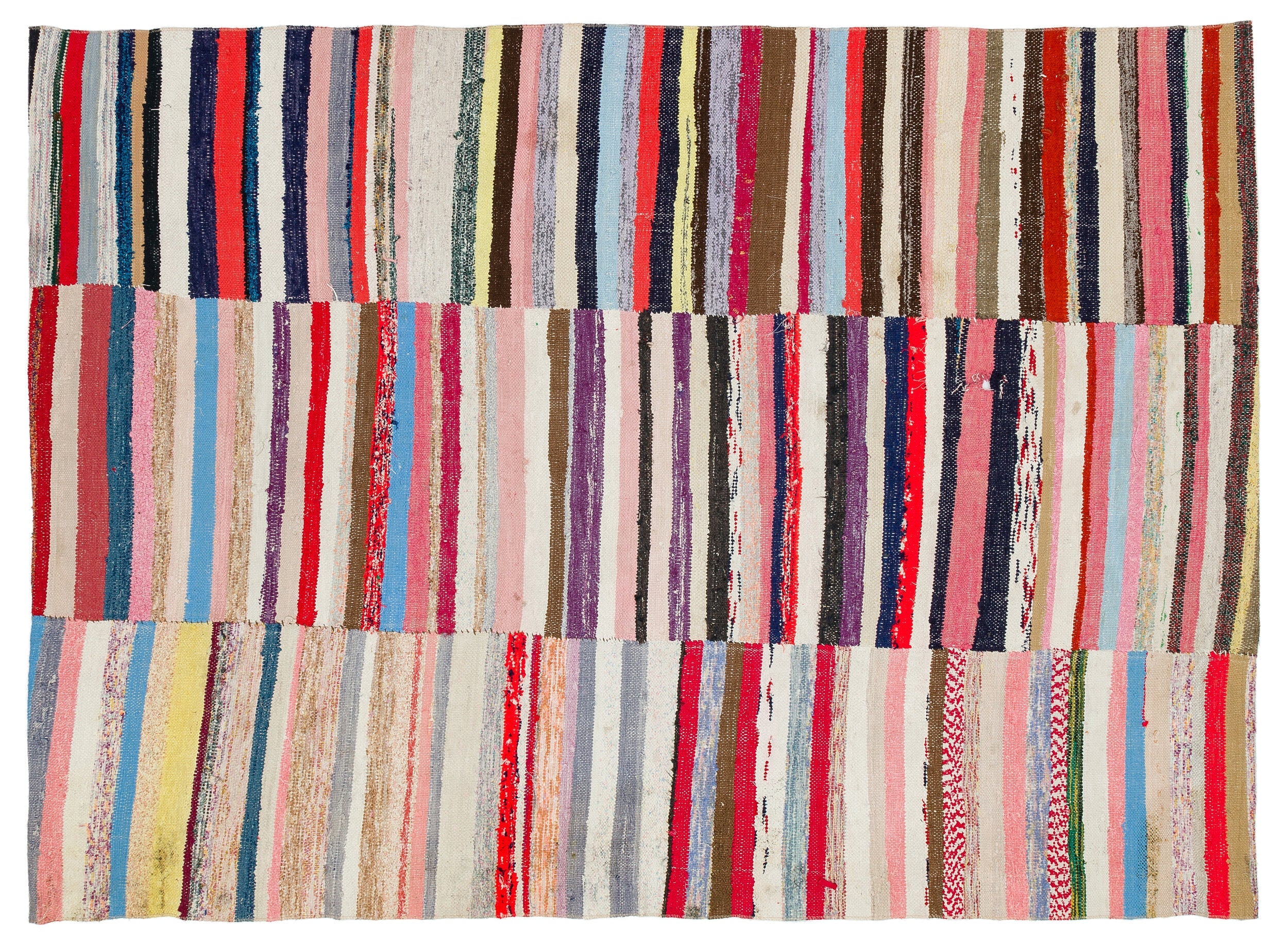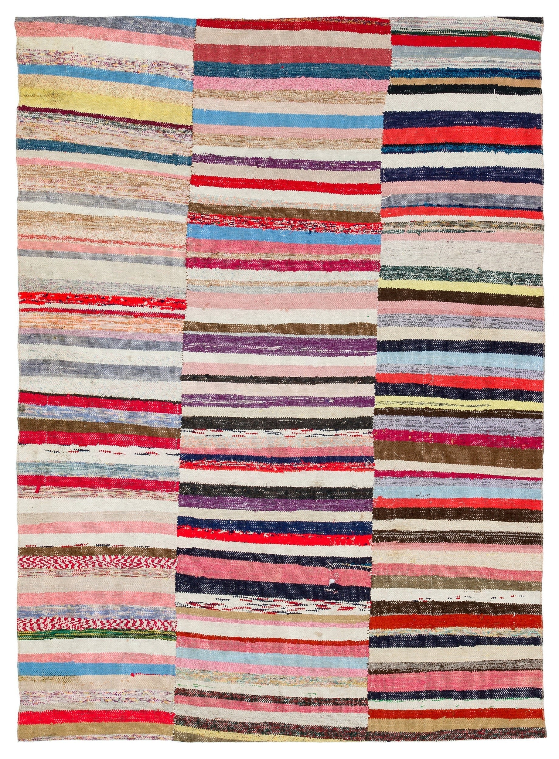 Girit Grey Striped Wool Handmade Area Rug 5'2" x 7'1"