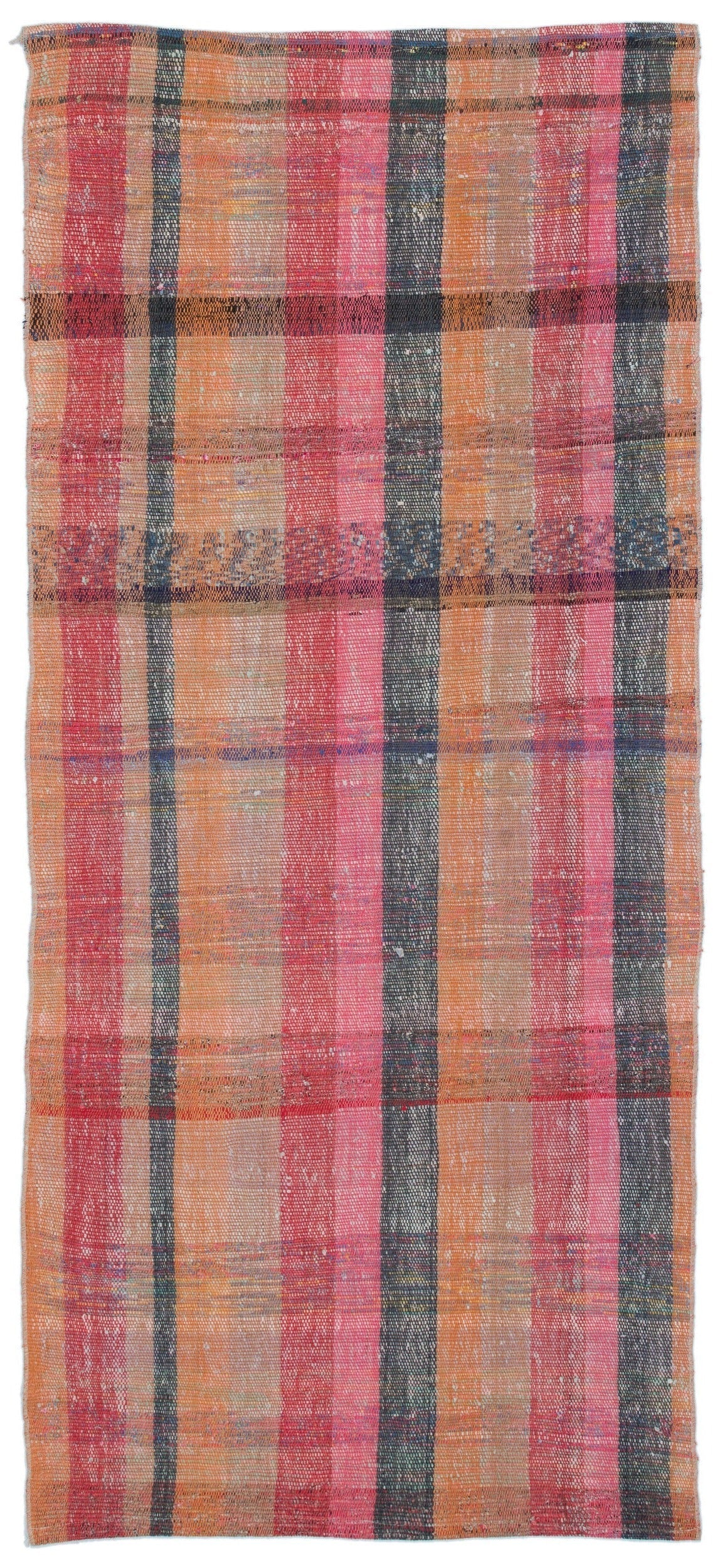 Girit Orange Striped Wool Handmade Area Rug 3'3" x 7'6"