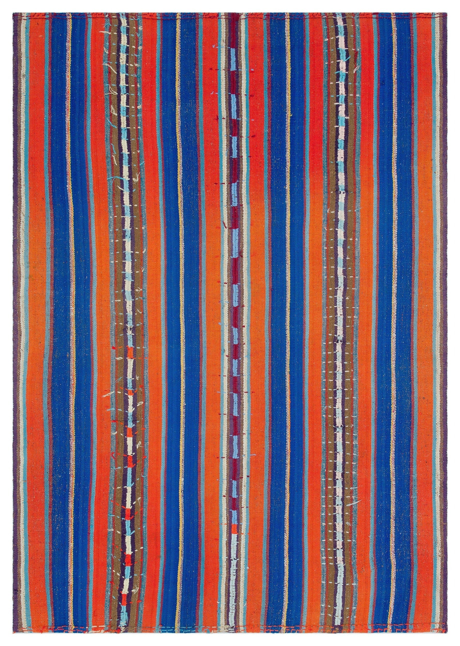 Girit Orange Striped Wool Handmade Area Rug 5'2" x 7'5"