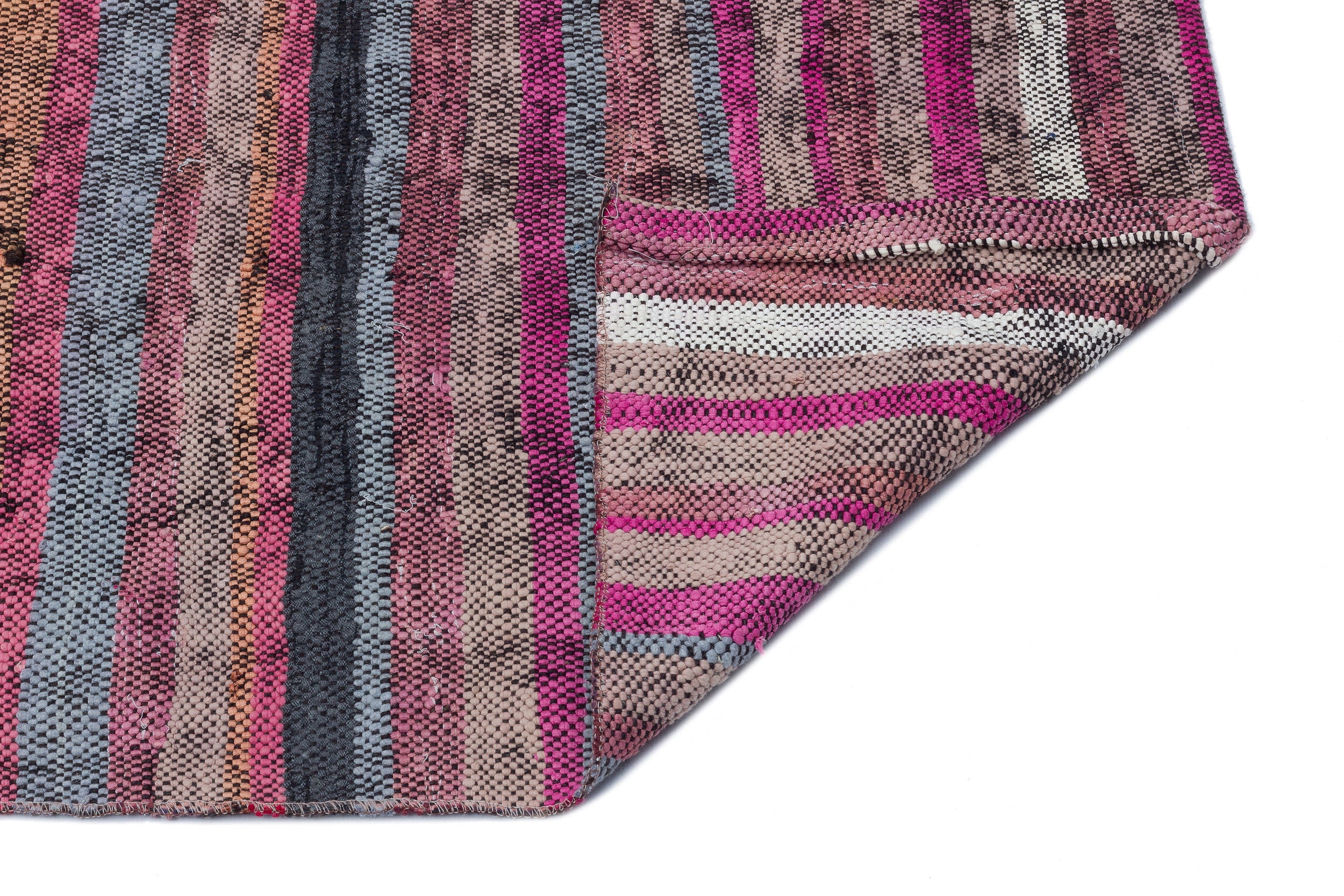 Girit Pink Striped Wool Handmade Area Rug 2'5" x 10'1"