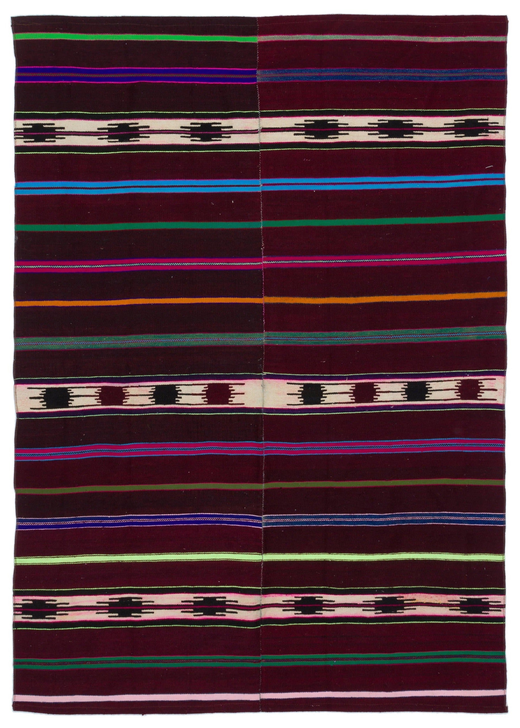Girit Purple Striped Wool Handmade Area Rug 4'3" x 6'2"